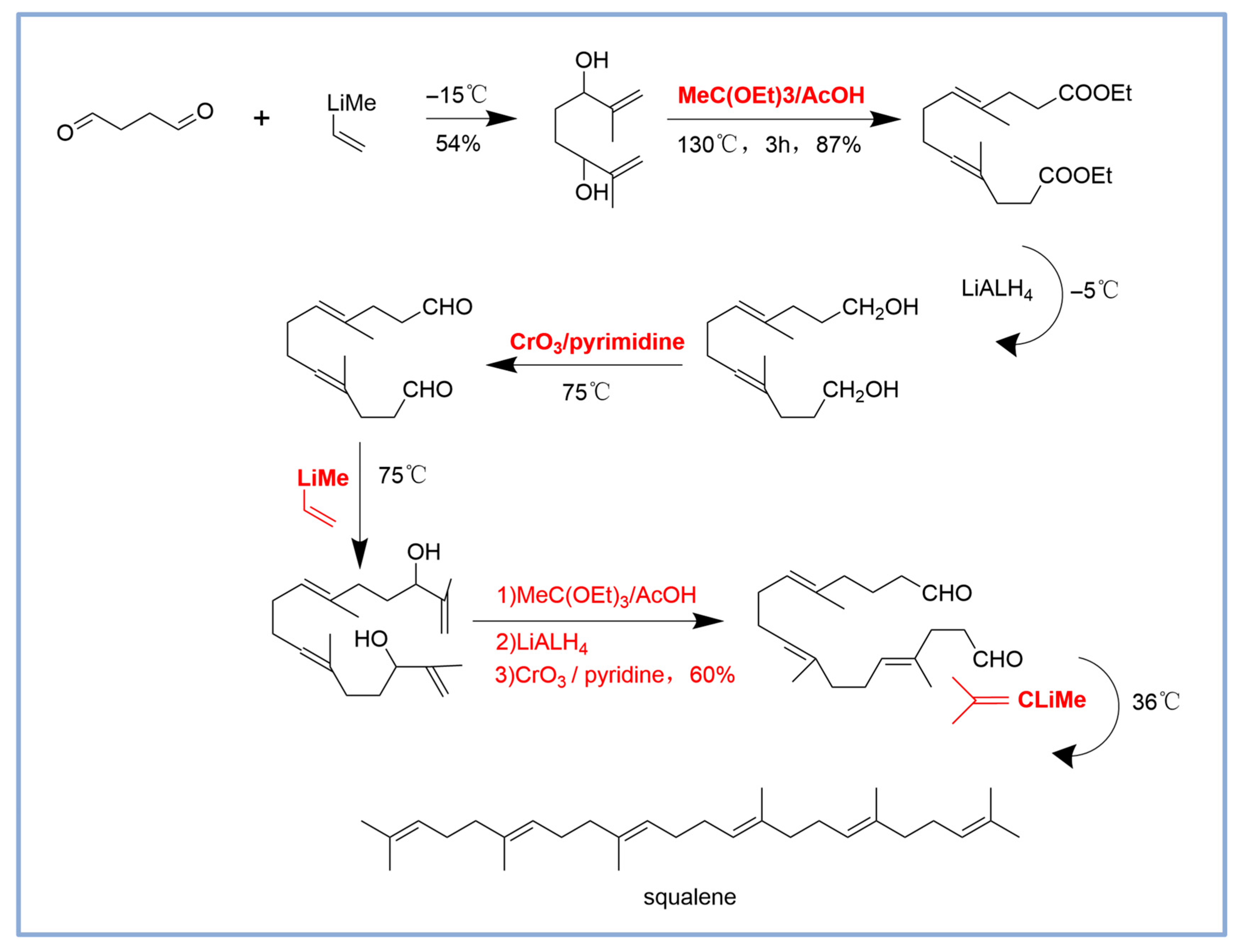 - Werthemann, L.; Johnson, W.S. Application of the chloro ketal claisen reaction to the total synthesis of squalene. Proc. Natl. Acad. Sci. USA 1970, 67, 1465–1467. [Google Scholar] [CrossRef]