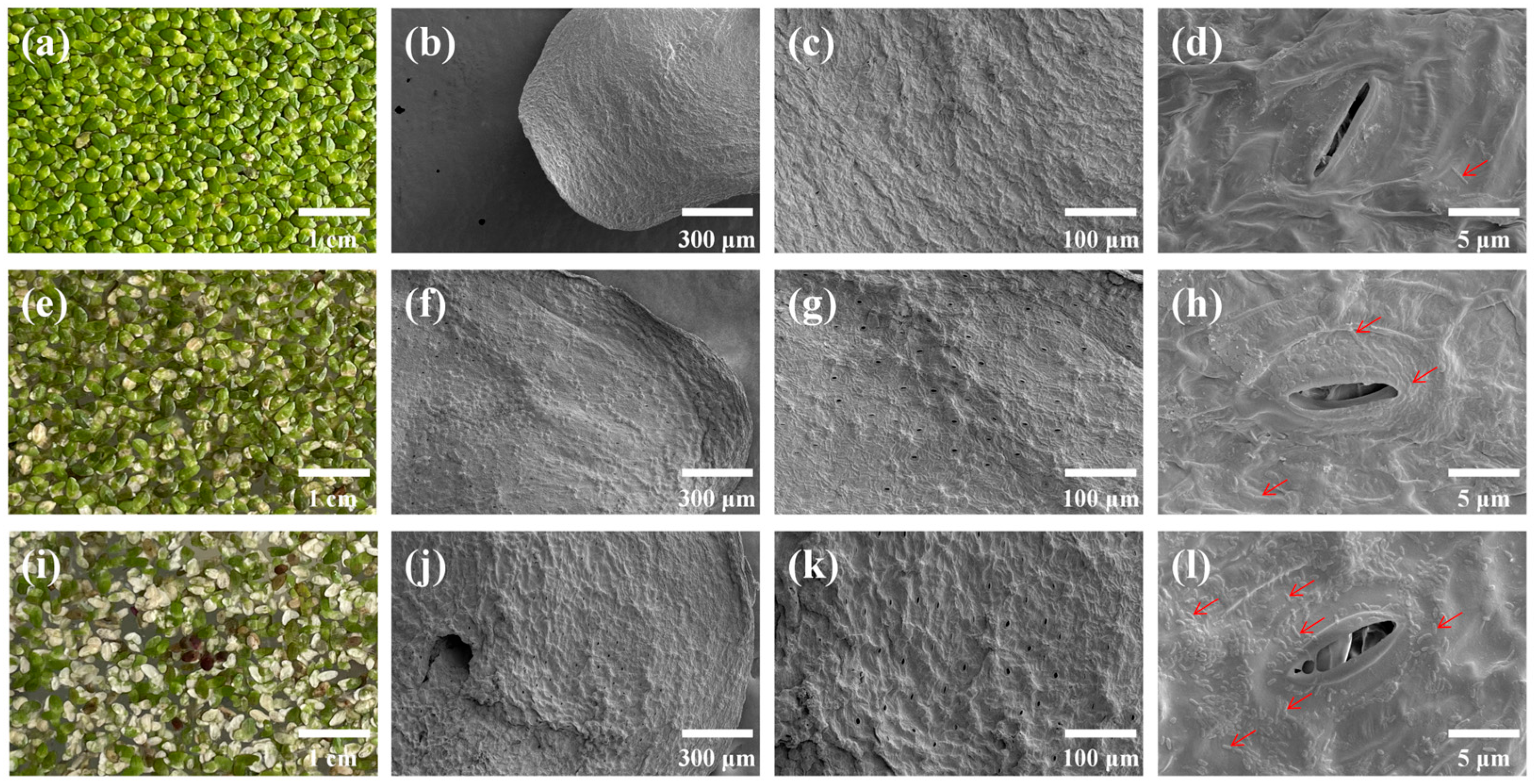 - Wang, X.; Hu, L.; Wu, D.; Huang, T.; Zhang, B.; Cai, G.; Gao, G.; Liu, Z.; Huang, X.; Zhong, Z. Large-Scale Screening and Characterization of Cd Accumulation and Ultrastructural Deformation in Duckweed. Sci. Total Environ. 2022, 832, 154948. [Google Scholar] [CrossRef]