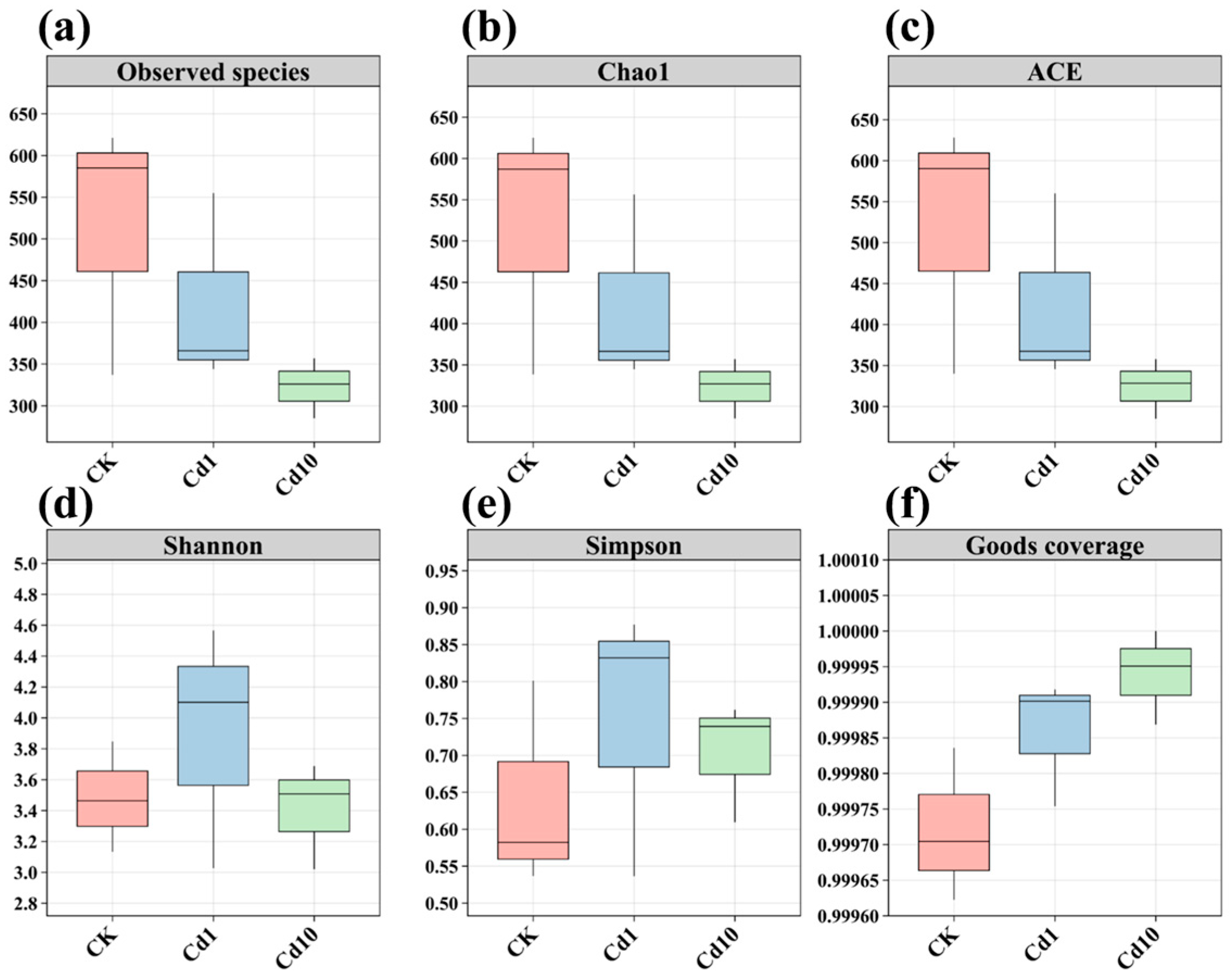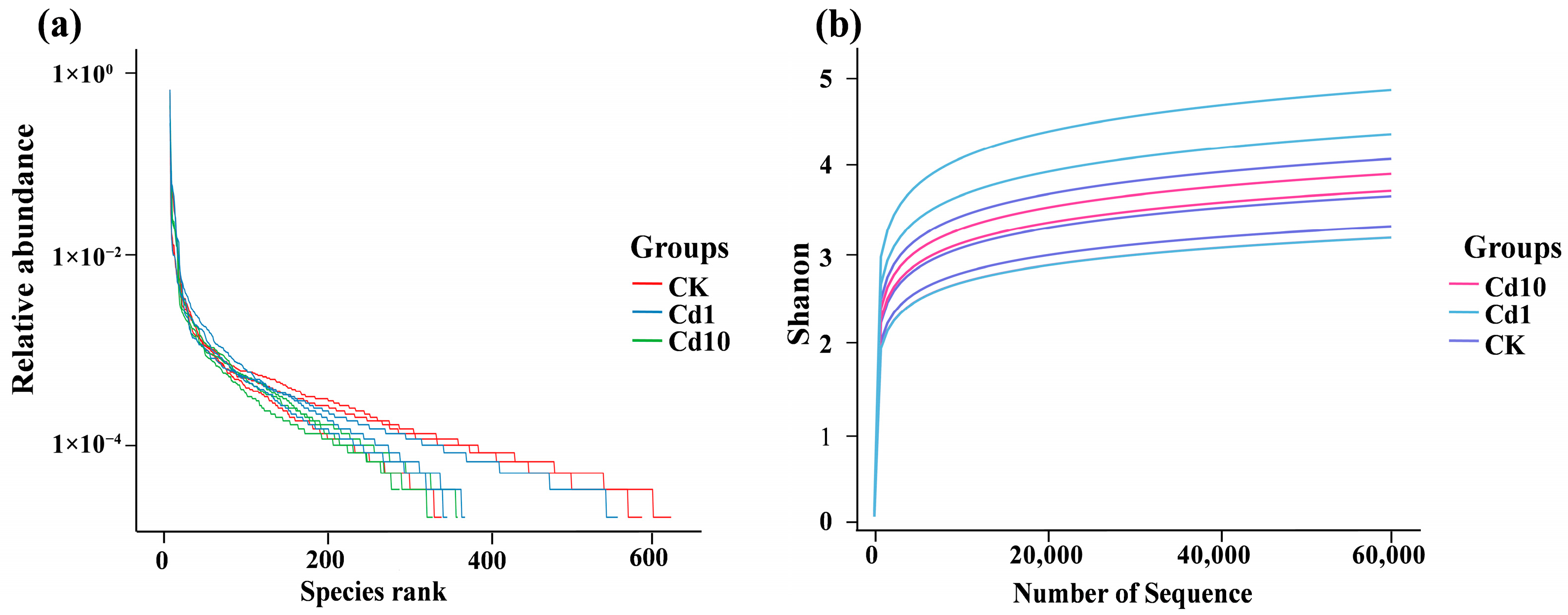 3.5. Microbial Community Structure and Composition Under Cd Treatment