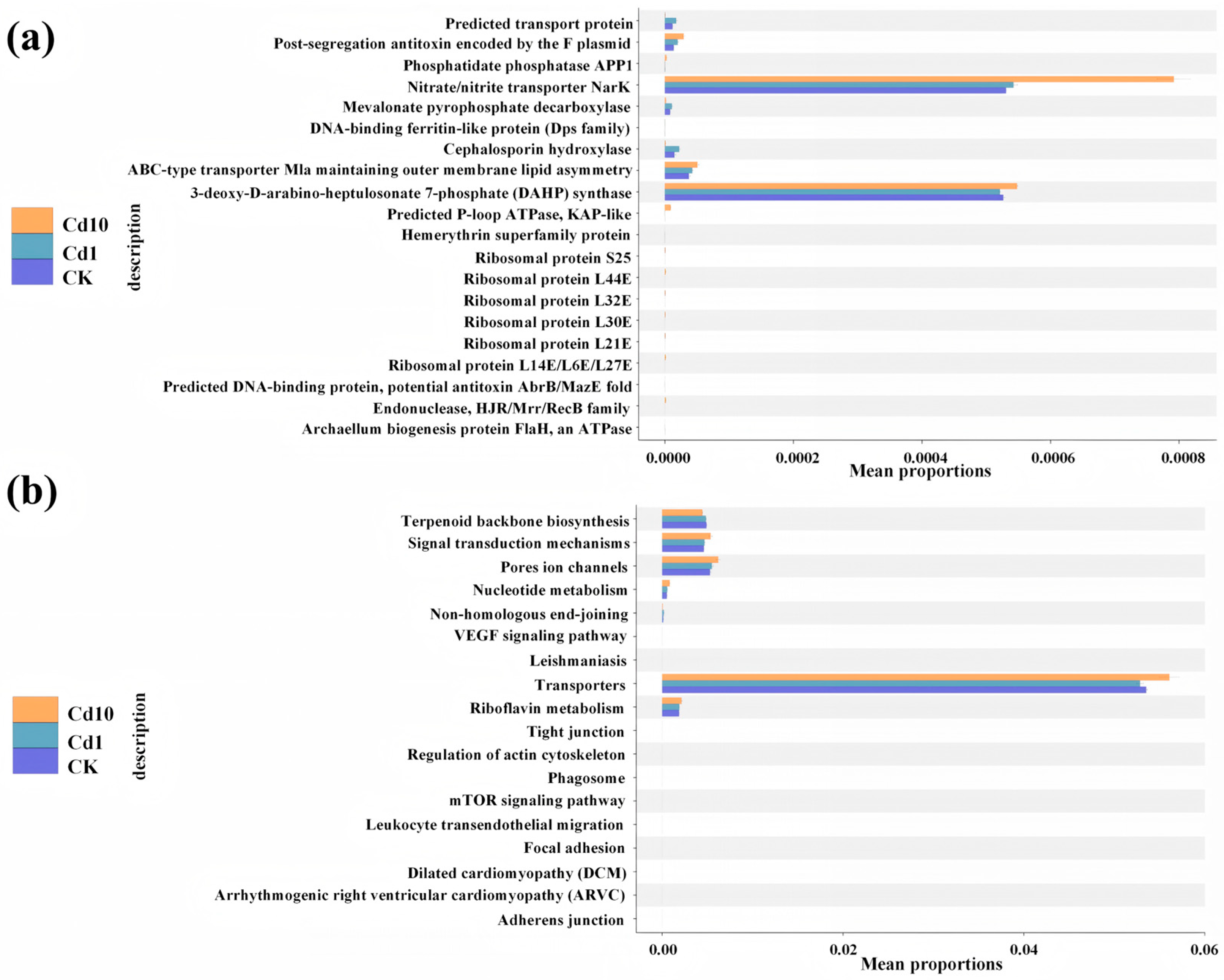 4.3. Functional Differentiation of S. polyrhiza Frond Bacterial Communities Under Cadmium Stress