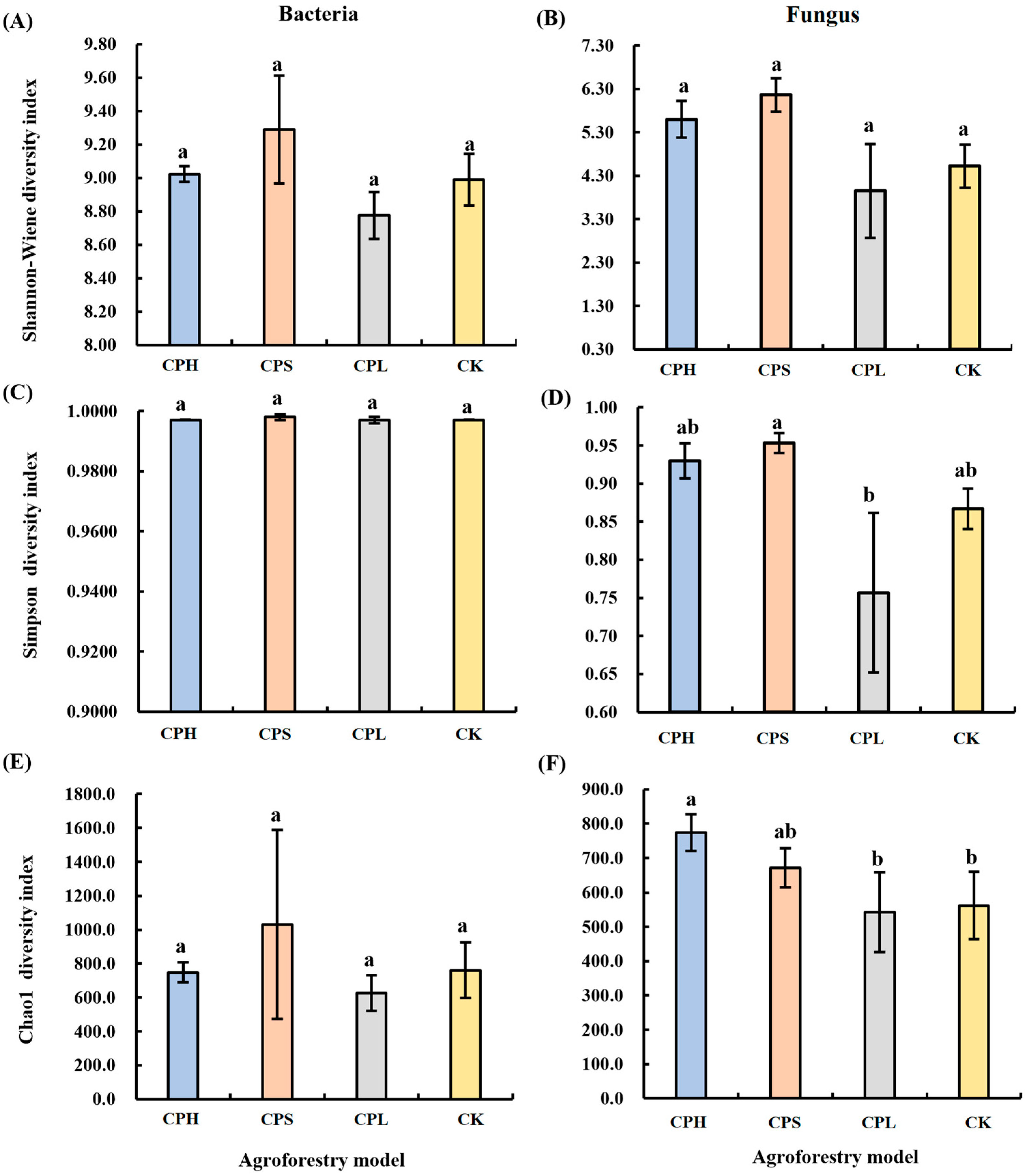 4.1. Agroforestry Practices Enhanced Soil Microbial Diversity