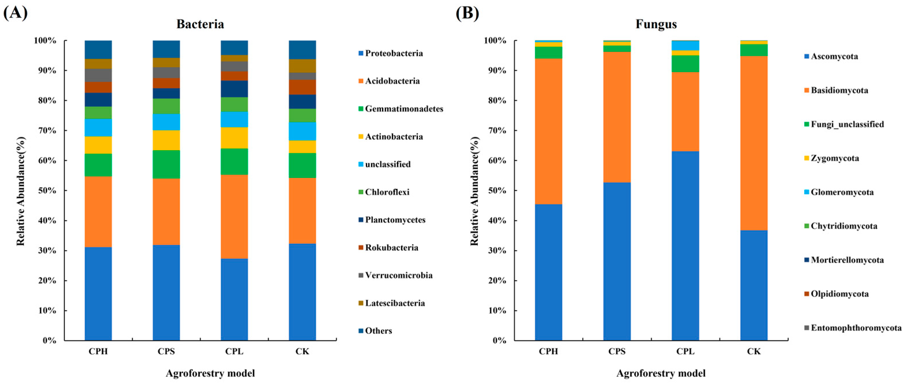 - Wang, H.; Cao, X.; Fan, W.; Deng, P.; Xu, X. Effects of intercropping systems of Phyllostachys edulis and Bletilla striata on soil bacterial community composition and function. Agroforest. Syst. 2023, 97, 617–630. [Google Scholar] [CrossRef]