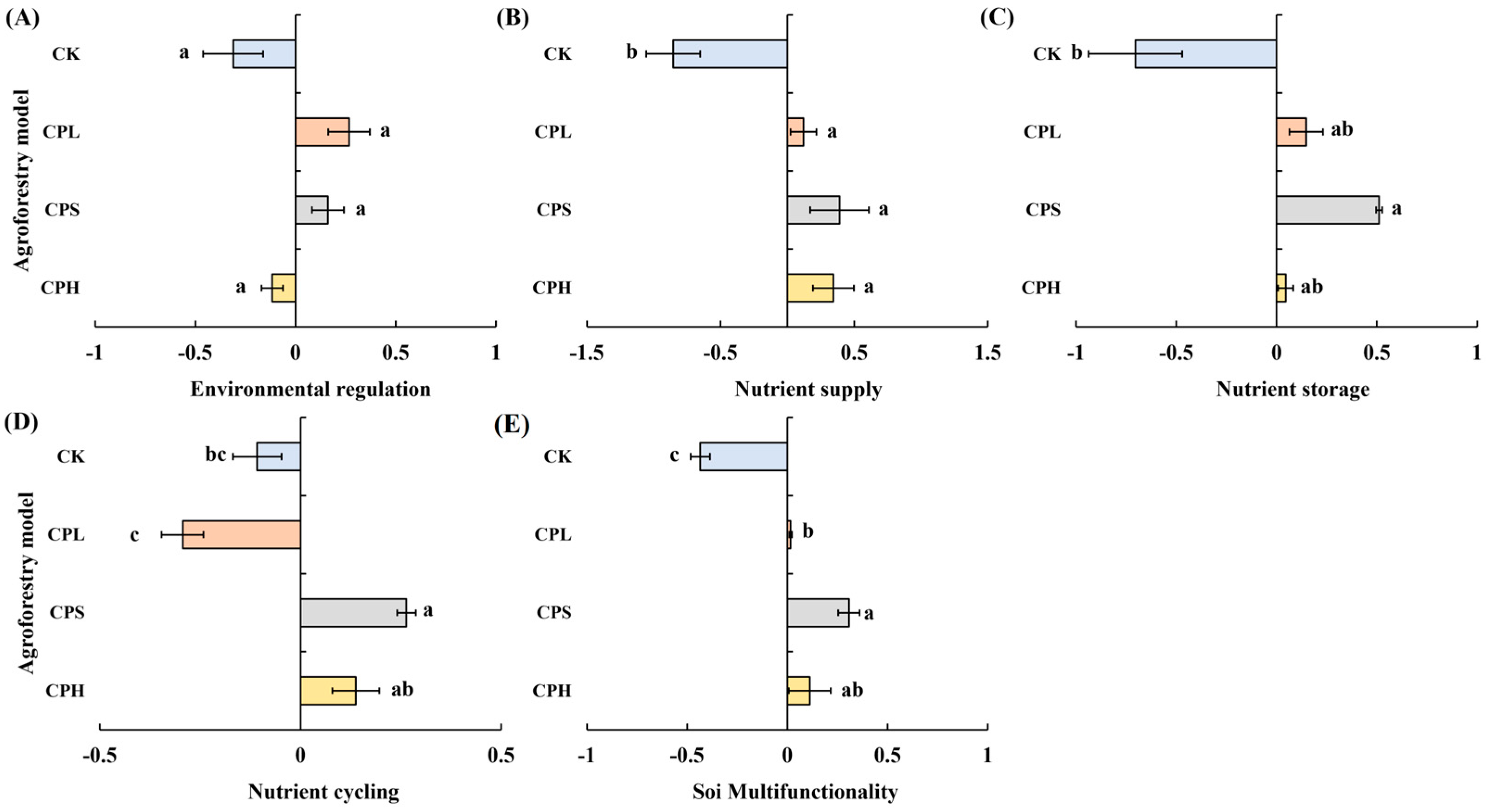 - Li, S.; Gong, S.; Hou, Y.; Li, X.; Wang, C. The impacts of agroforestry on soil multi-functionality depending on practices and duration. Sci. Total Environ. 2022, 847, 157438. [Google Scholar] [CrossRef]