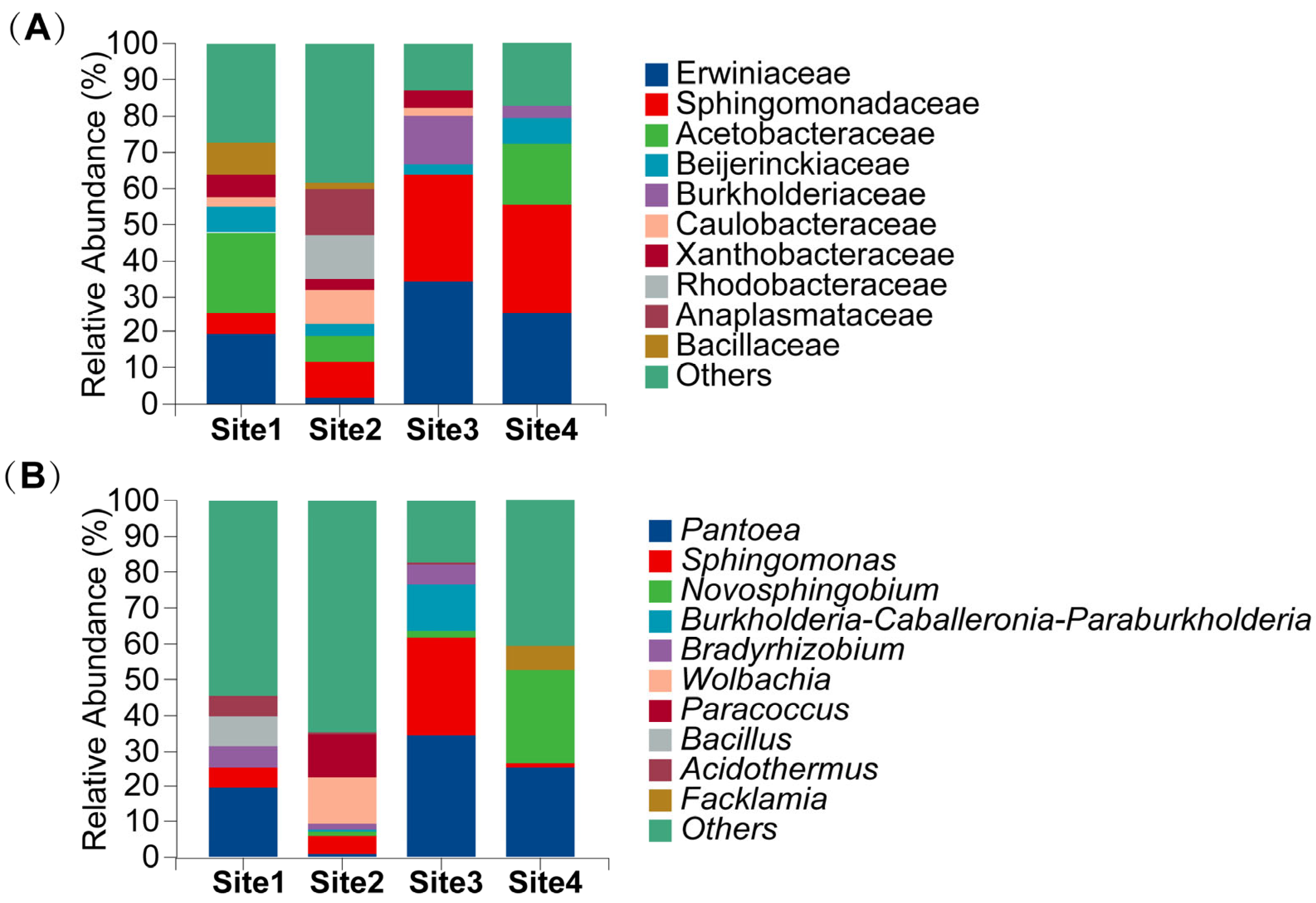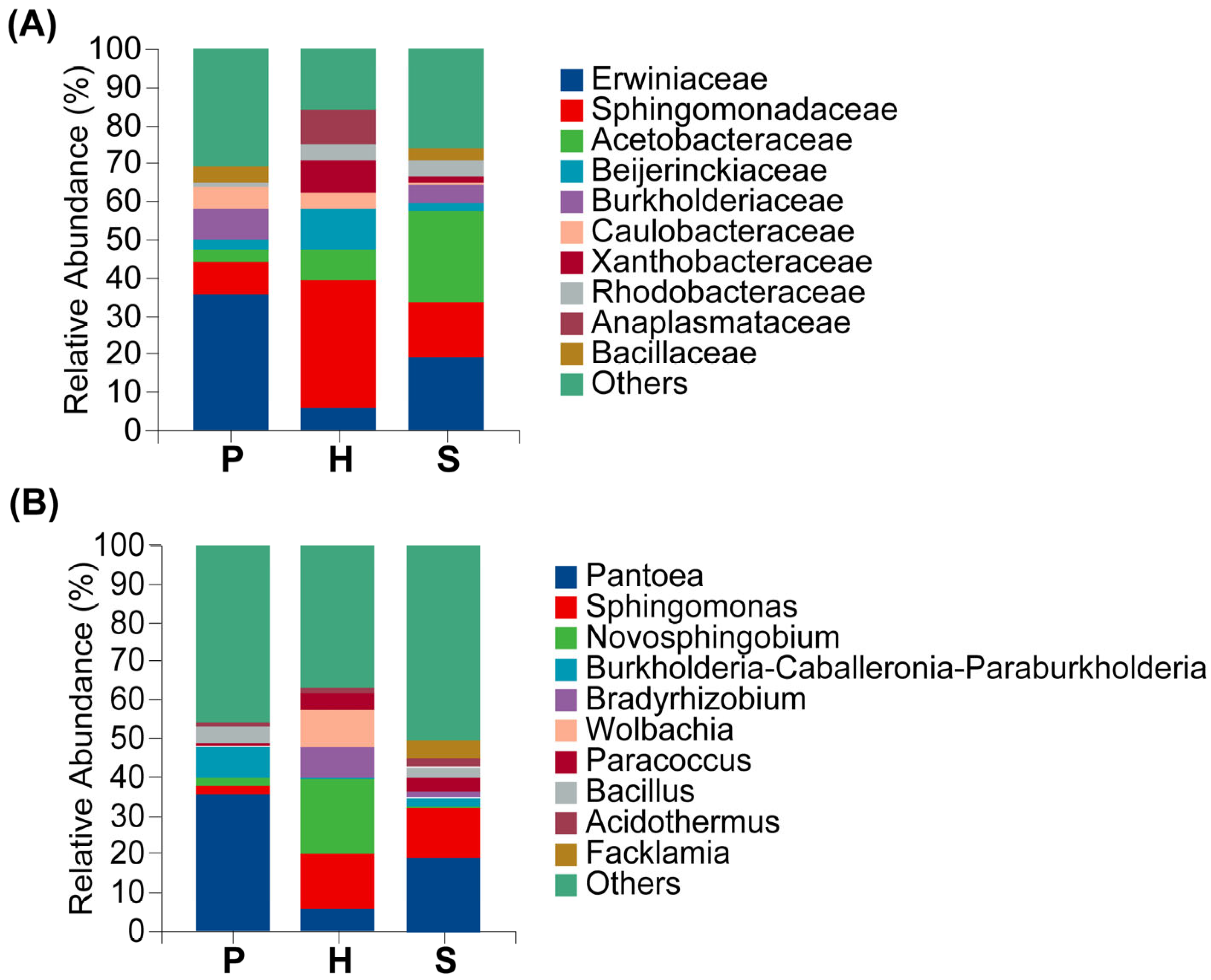 Pantoea was identified as the most abundant bacterial taxon associated with
