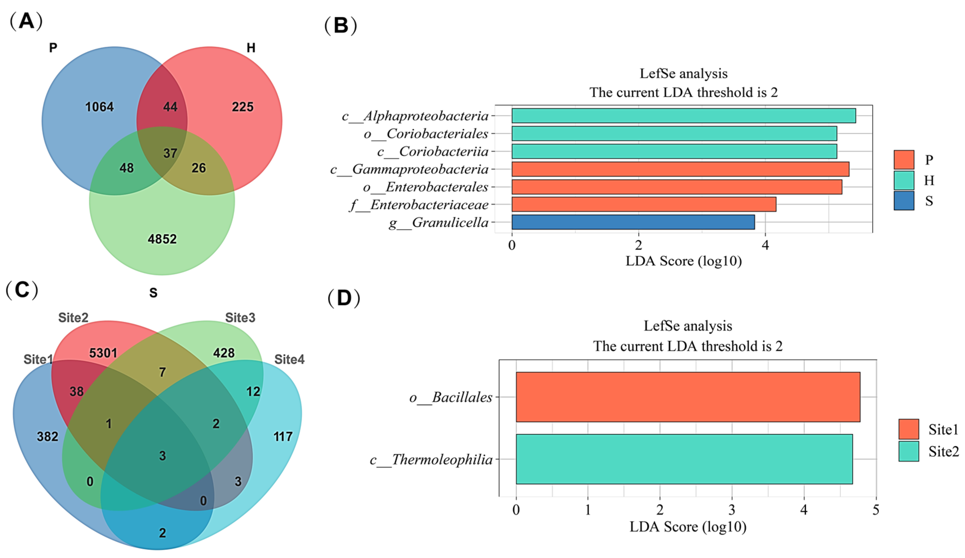 77]. The hymenophore demonstrated elevated abundances of two-component systems and DNA replication and repair pathways, likely reflecting adaptations for signal perception and damage repair during sporogenesis. This resembles the characteristic activation of DNA repair pathways in microorganisms inhabiting fungal reproductive structures. At the geographic provenance level, Site 2 (Wujie Town, Nanhua County, Chuxiong Prefecture) exhibited high total metabolic pathway abundance and enrichment of lipid and carbohydrate metabolism pathways, potentially indicative of functional redundancy within the bacterial community in a stable, eutrophic environment. The high abundance of AMR pathways at Site 1 (Wujie Town, Nanhua County, Chuxiong Prefecture) and Site 4 (Baisha Town, Yulong County, Lijiang City) was associated with distinct environmental selection pressures: natural antibiotics produced by actinomycetes at high altitudes and agricultural pesticide residues, respectively. This corroborates established conclusions that pesticide exposure induces AMR gene enrichment in soil microorganisms [