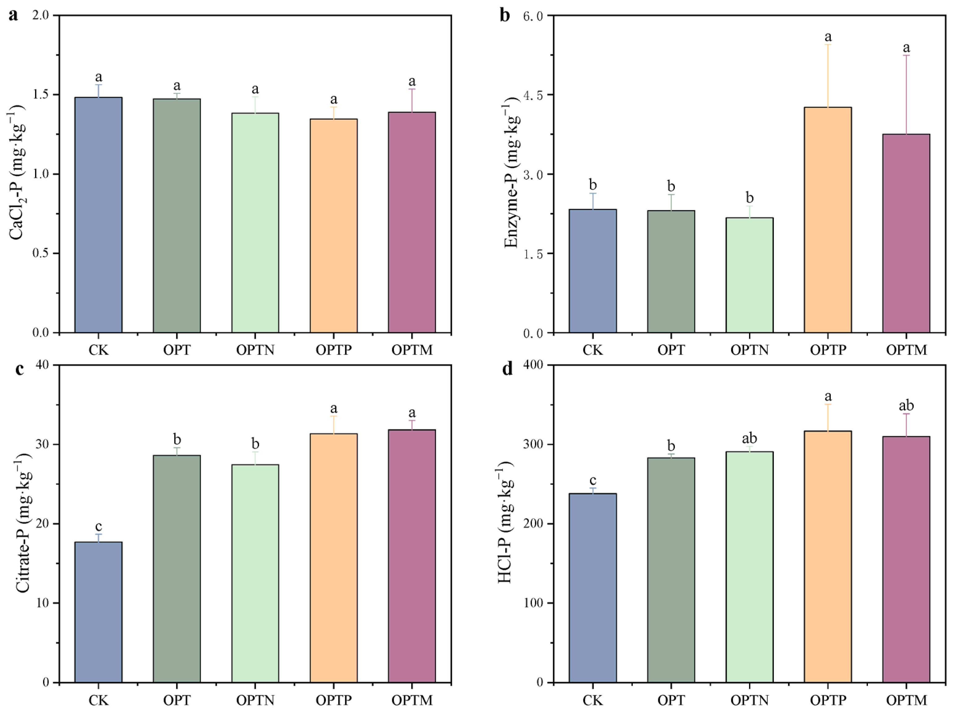 AP (mg kg−1) | 5.77 ± 5.84 d | 48.69 ± 8.85 c | 39.89 ± 6.07 c | 92.63 ± 9.03 a | 62.84 ± 9.53 b |