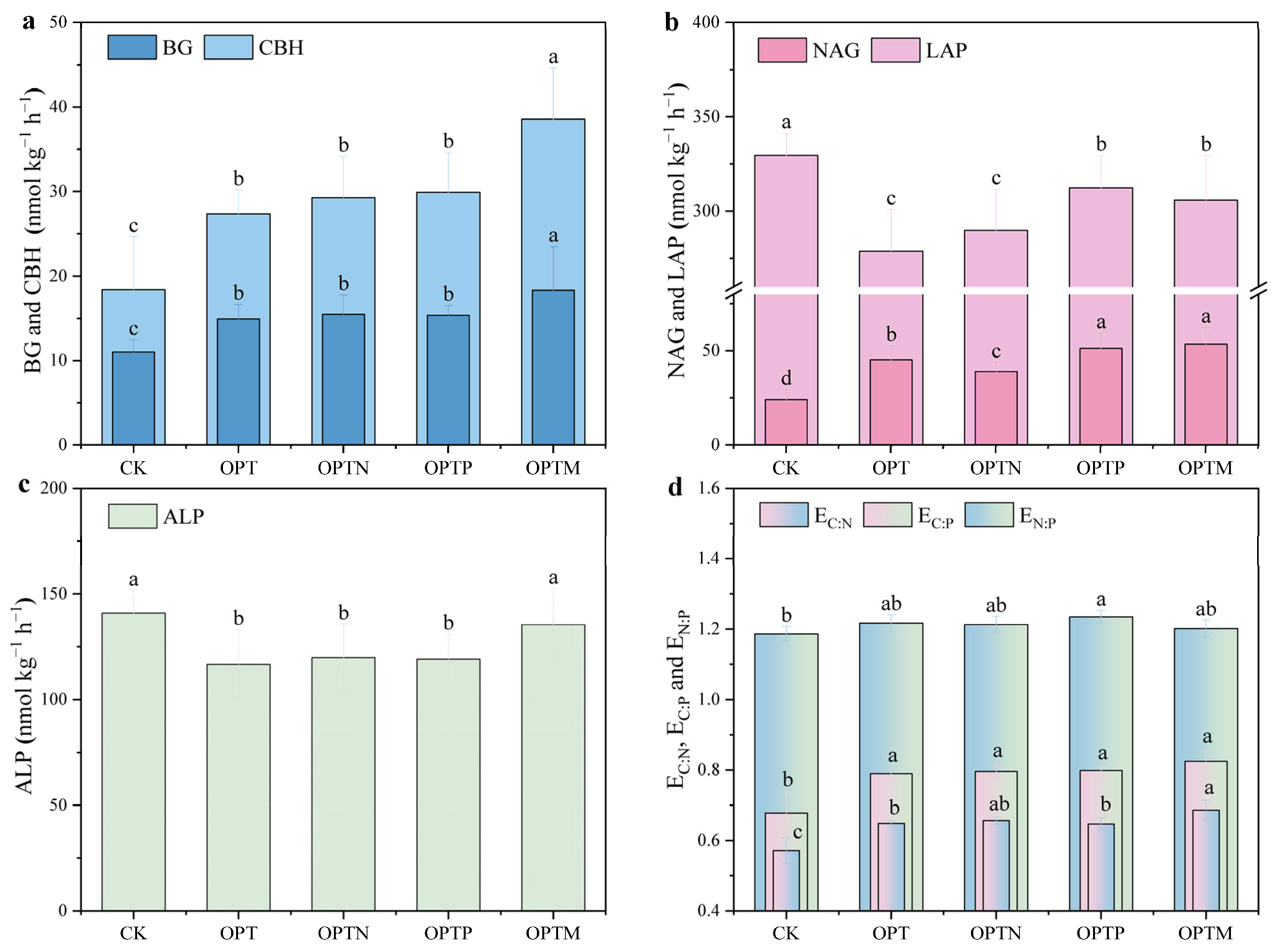 - Ren, Y.; Wang, Y.; Zhang, X.; Liu, X.; Liu, P.; Chen, L. Enzymatic Stoichiometry Reveals the Metabolic Limitations of Soil Microbes under Nitrogen and Phosphorus Addition in Chinese Fir Plantations. Microorganisms 2024, 12, 1716. [Google Scholar] [CrossRef]