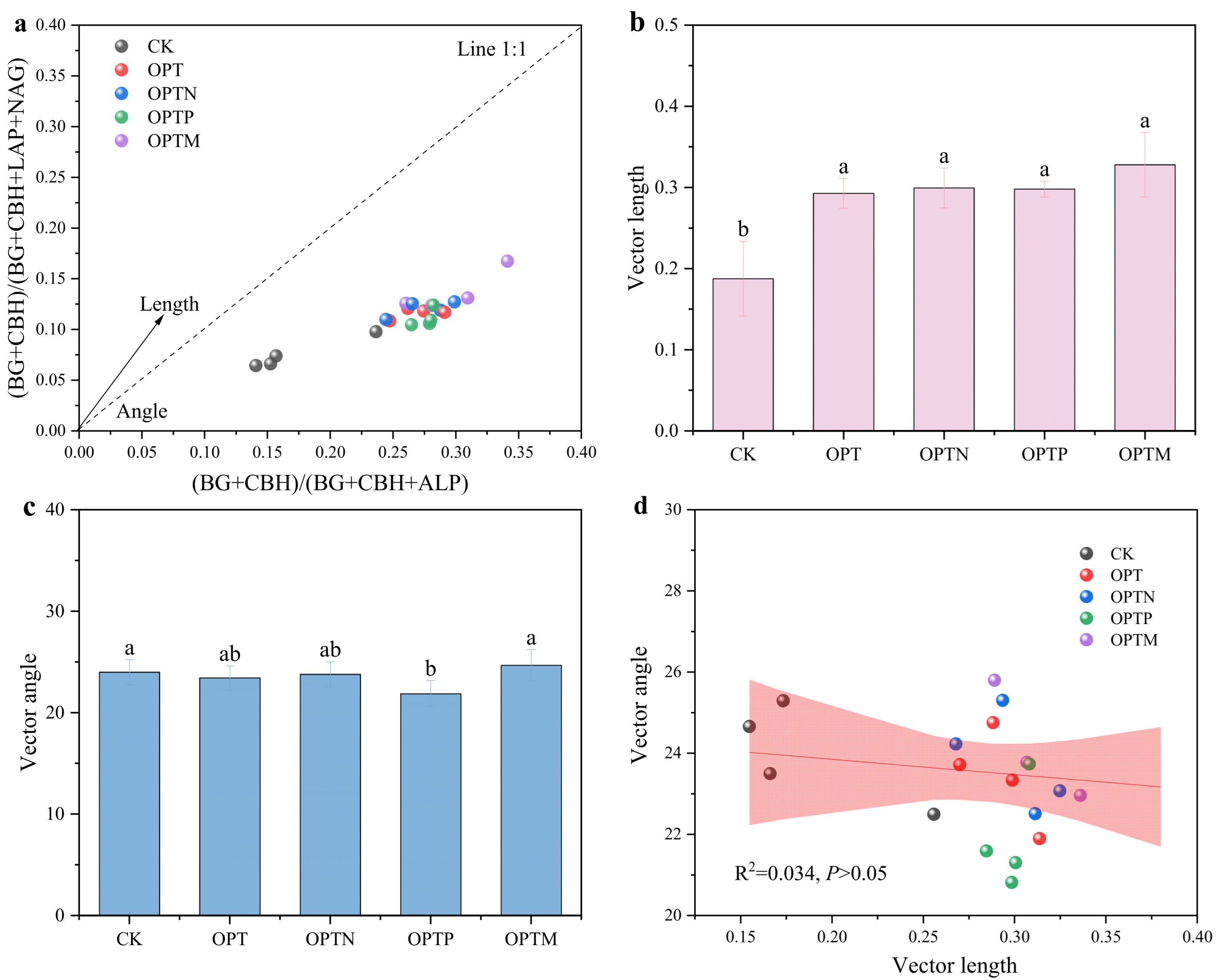 2.5. Vector Analysis of Soil Extracellular Enzyme Activities