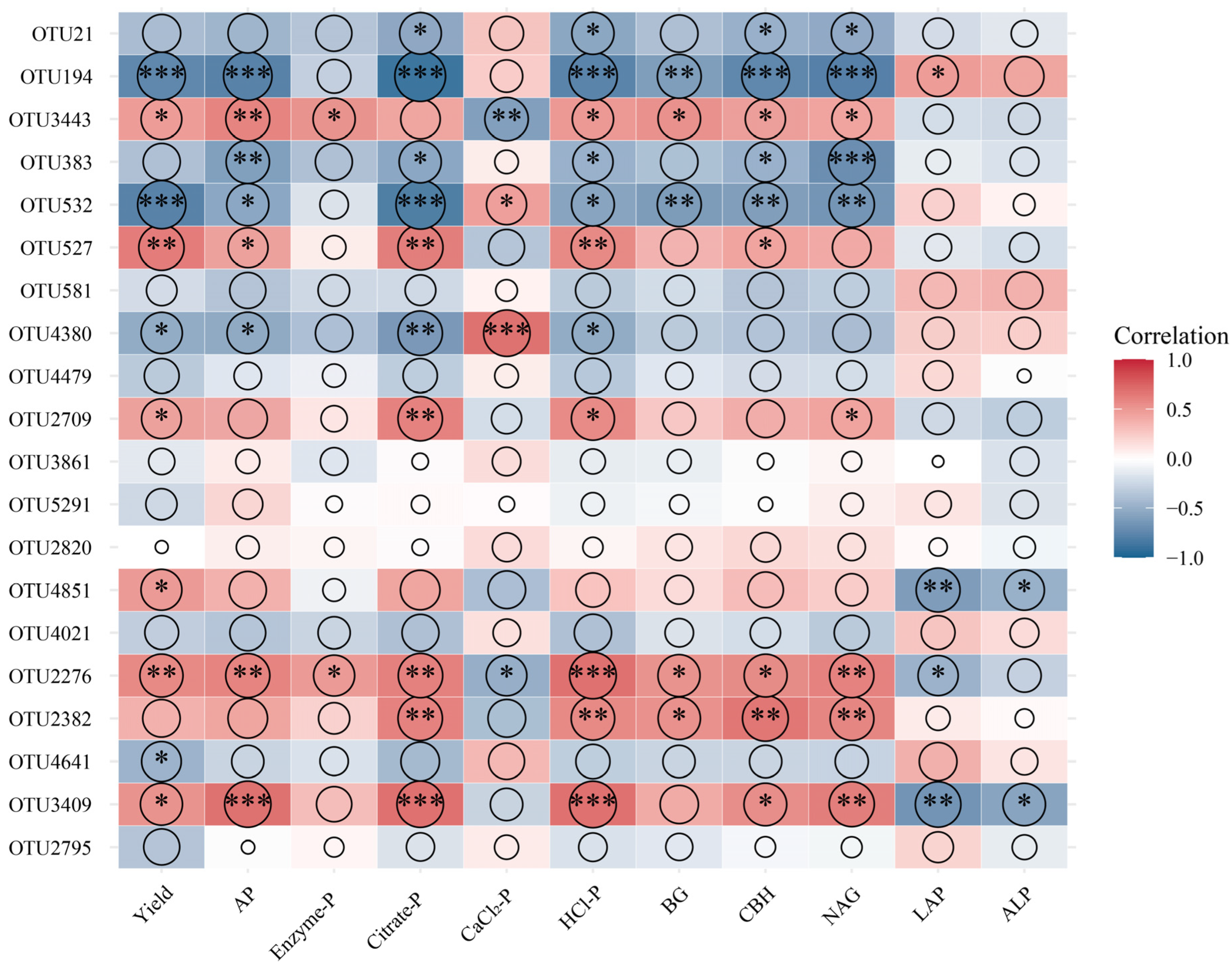 4.3. Integrated Effects of P Fractions, Enzyme Activities, and Microbial Communities on Wheat Yield