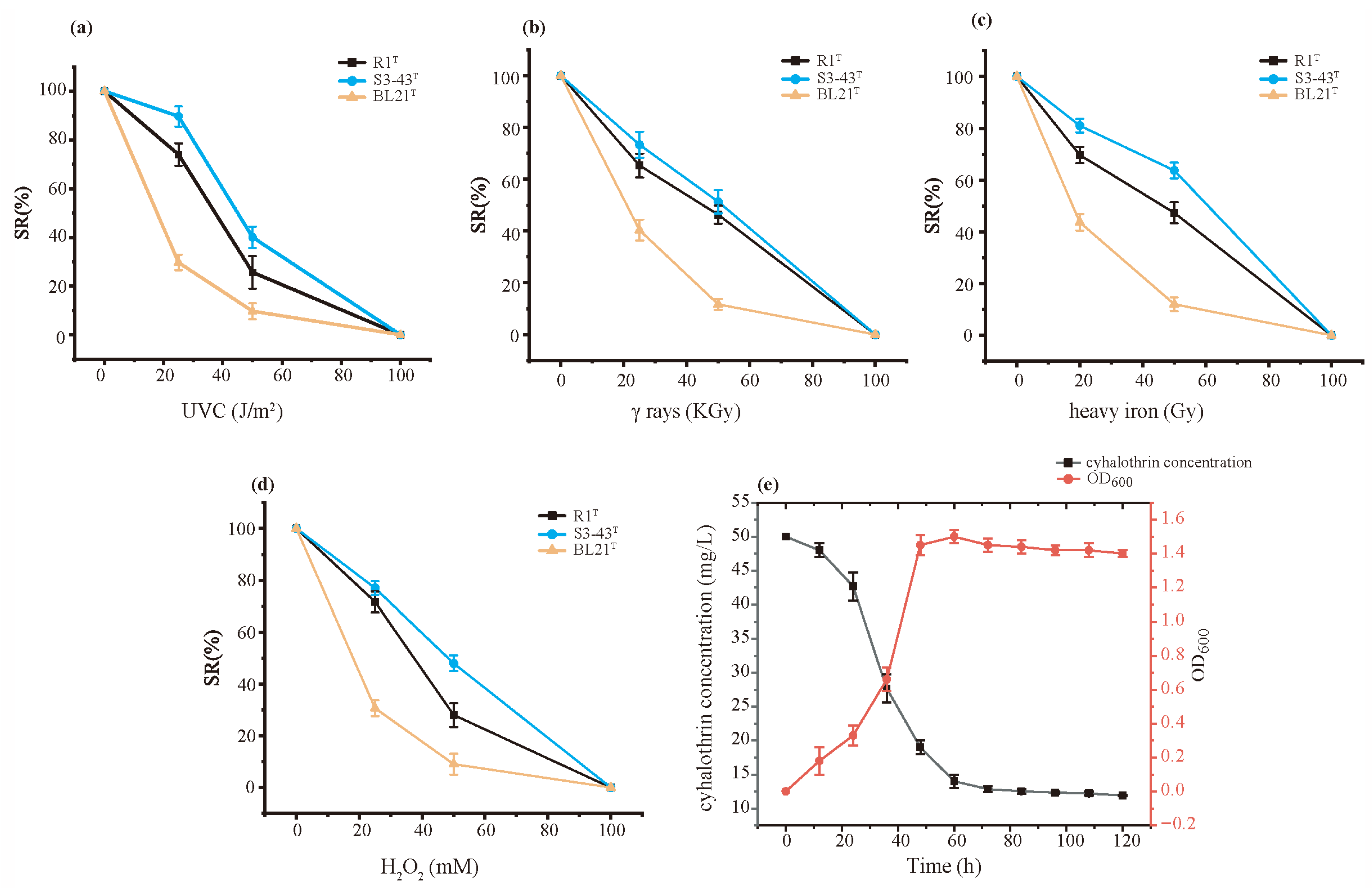 3.2. The Radiation Resistance and Antioxidant of S3-43T