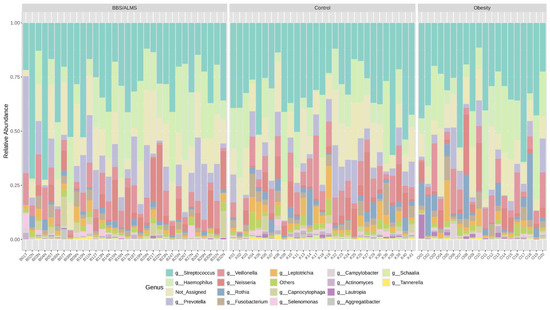Goodson et al. associated an increased presence of Selenomonas sp. and Prevotella sp. with being overweight, while our study reported an even higher abundance of Selenomonas and Prevotella genera in the ALMS/BBS group compared to participants with simple obesity [49]. Other studies have linked the genera Veillonella, Oribacterium, and Soonwooa [61] as well as Firmicutes and Actinobacteria [62] with obesity. Changes in oral microbiome composition appear to be associated with obesity development in multiple mechanisms [63], as well as different taste perceptions [64,65]. Other systemic mechanisms may involve changes in the composition of gut bacteria. This may lead to changes in adipose tissue function, inflammation along the oral–blood axis, and feeding behavior via the gut–brain axis [63,66].