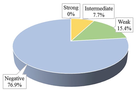 Most articles describing efflux pumps are devoted to reviews, or rather genotypic characterisation, and the impact of new potential efflux pump inhibitors (e.g., [62,63,64]). From the available data about phenotypic identification of efflux pumps, Favour et al. [65] in their study report up to 83% occurrence of efflux pump producers in their samples. However, they were only multiresistant isolates without distinction into weak, intermediate, and strong producers. Nevertheless, it is more compared to our 23.1%. Patel et al. [66] identified efflux pumps in 47.7% of isolates, which is also more than we managed to do. The reason may also be the larger number of clinical isolates of S. aureus. Abdi et al. [67] described a 10% incidence of clinical isolates of S. aureus producing efflux pumps.