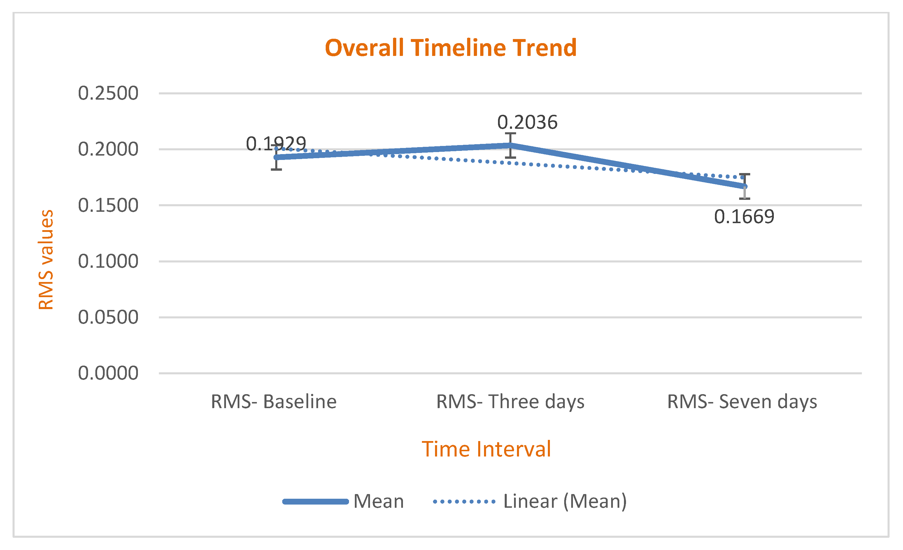 The results showed that the RMS value of scanned surgical guides increased from baseline to day 3, then decreased by day 7 (