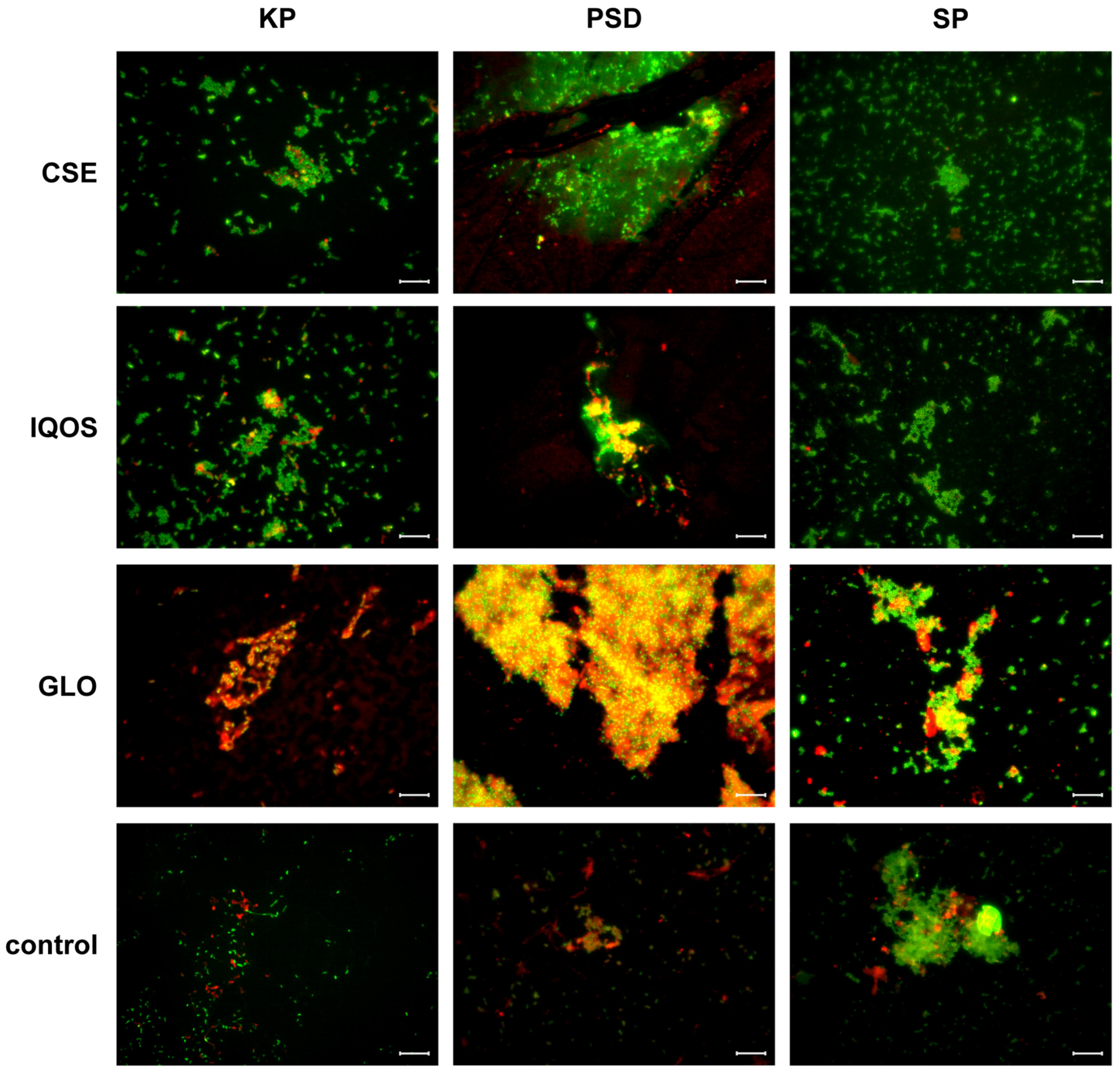 - Antunes, M.B.; Chi, J.J.; Liu, Z.; Goldstein-Daruech, N.; Palmer, J.N.; Zhu, J.; Cohen, N.A. Molecular Basis of Tobacco-Induced Bacterial Biofilms: An In Vitro Study. Otolaryngol. Neck Surg. 2012, 147, 876–884. [Google Scholar] [CrossRef]