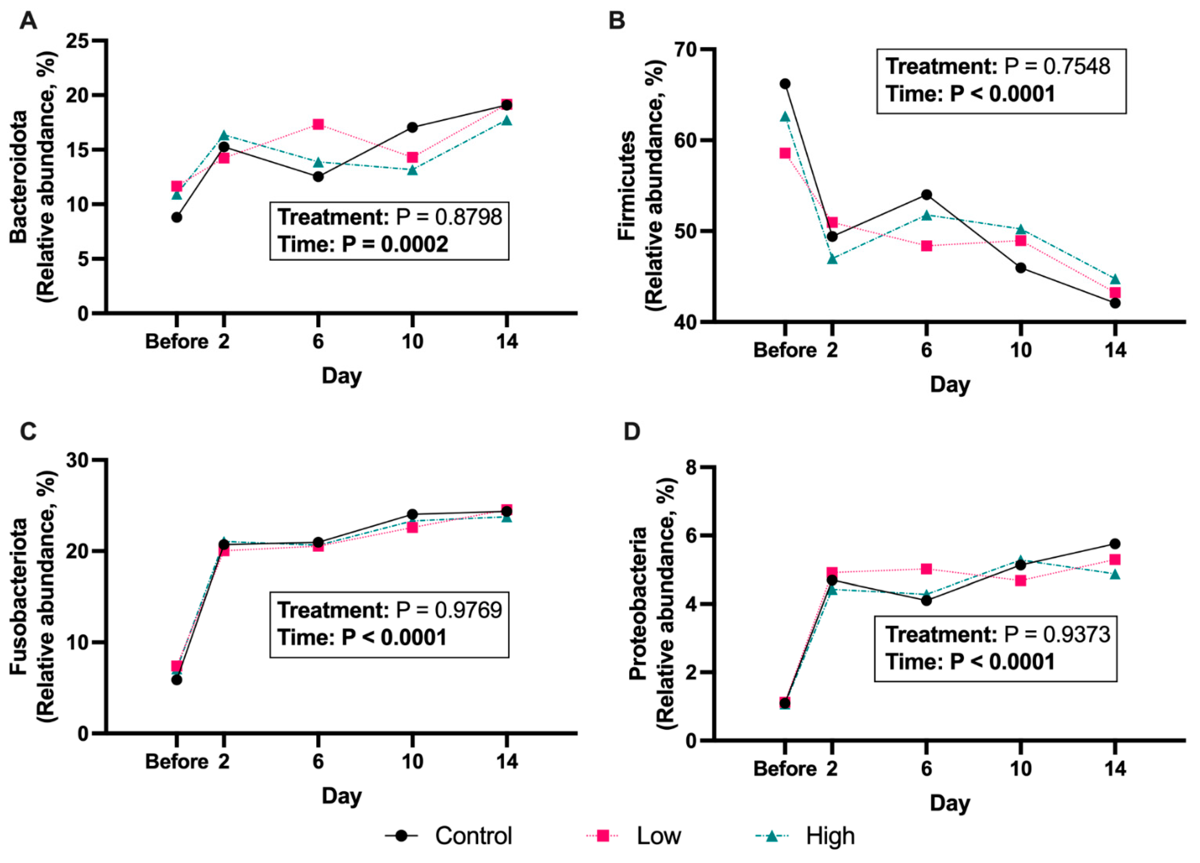 - Middelbos, I.S.; Vester Boler, B.M.; Qu, A.; White, B.A.; Swanson, K.S.; Fahey, G.C. Phylogenetic characterization of fecal microbial communities of dogs fed diets with or without supplemental dietary fiber using 454 pyrosequencing. PLoS ONE 2010, 5, e9768. [Google Scholar] [CrossRef]