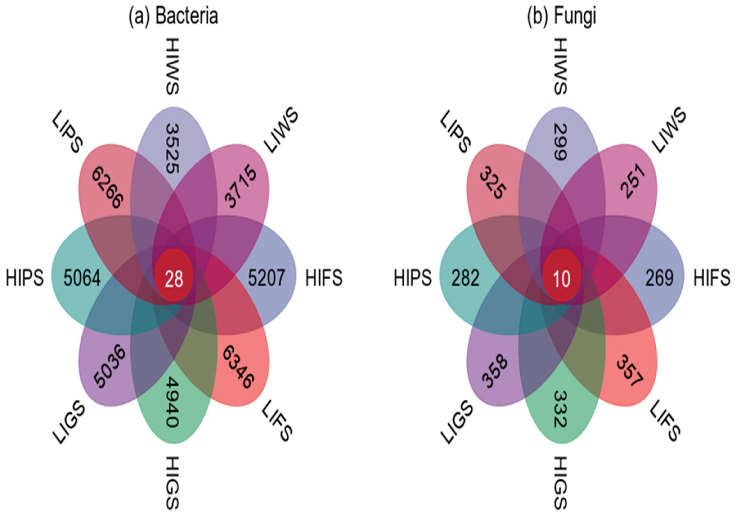 - Yuan, M.M.; Kakouridis, A.; Starr, E.; Nguyen, N.; Shi, S.; Pett-Ridge, J.; Nuccio, E.; Zhou, J.; Firestone, M. Fungal-Bacterial Cooccurrence Patterns Differ between Arbuscular Mycorrhizal Fungi and Nonmycorrhizal Fungi across Soil Niches. mBio 2021, 12, 10–1128. [Google Scholar] [CrossRef] [PubMed]