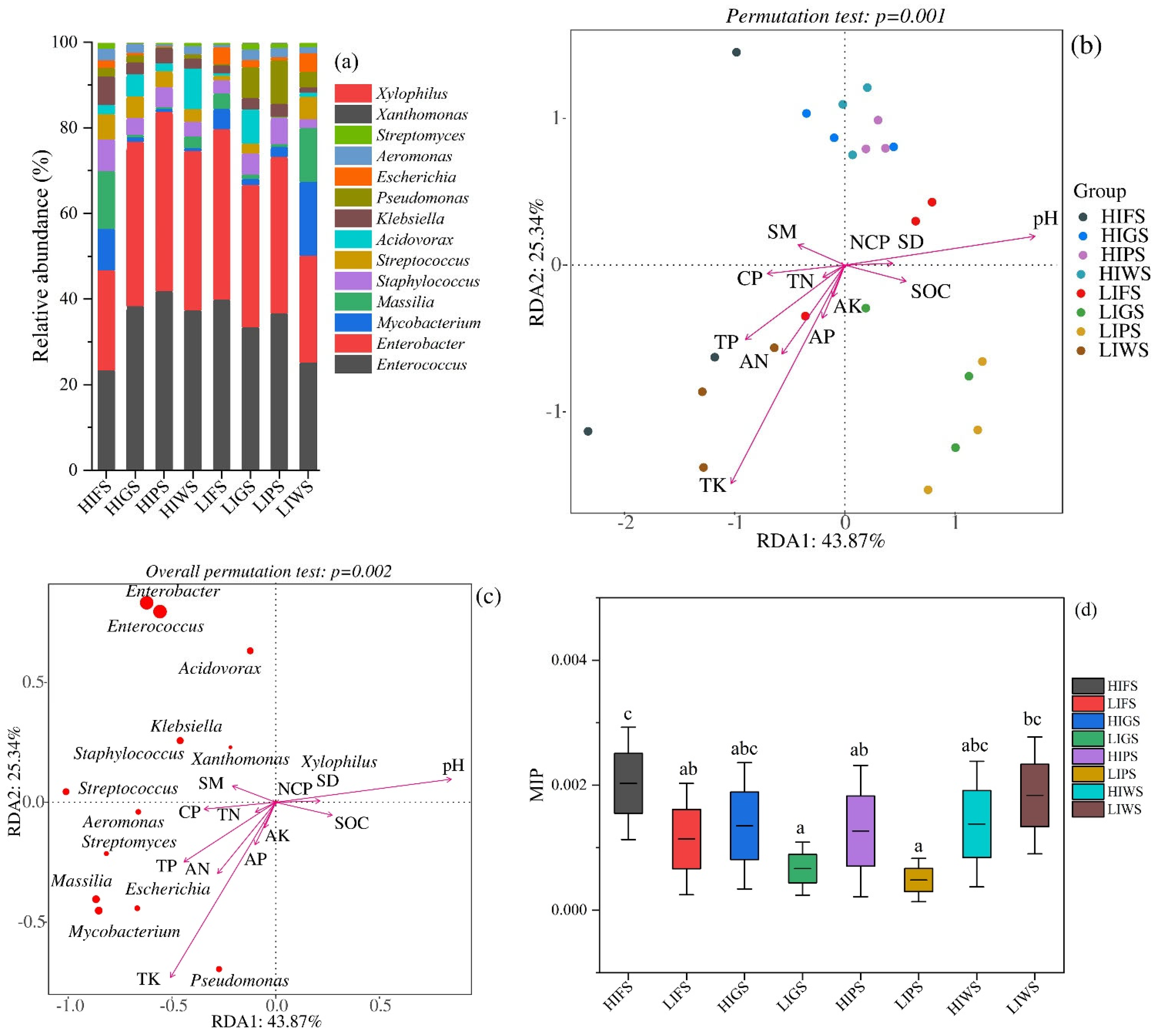 3.4. Relative Influence and Contribution of Environmental Factors to Microbial Community Distribution