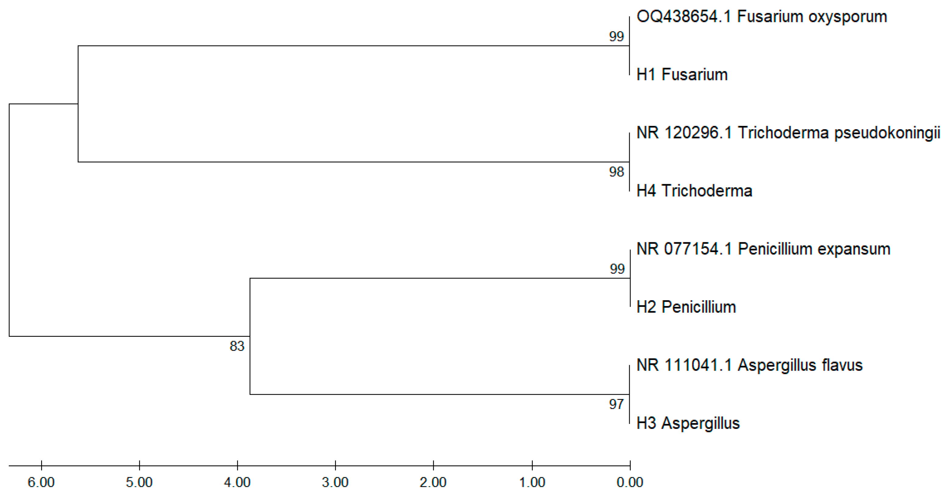 | Fusarium oxysporum | ITS | OQ438654.1 | 99.26% |