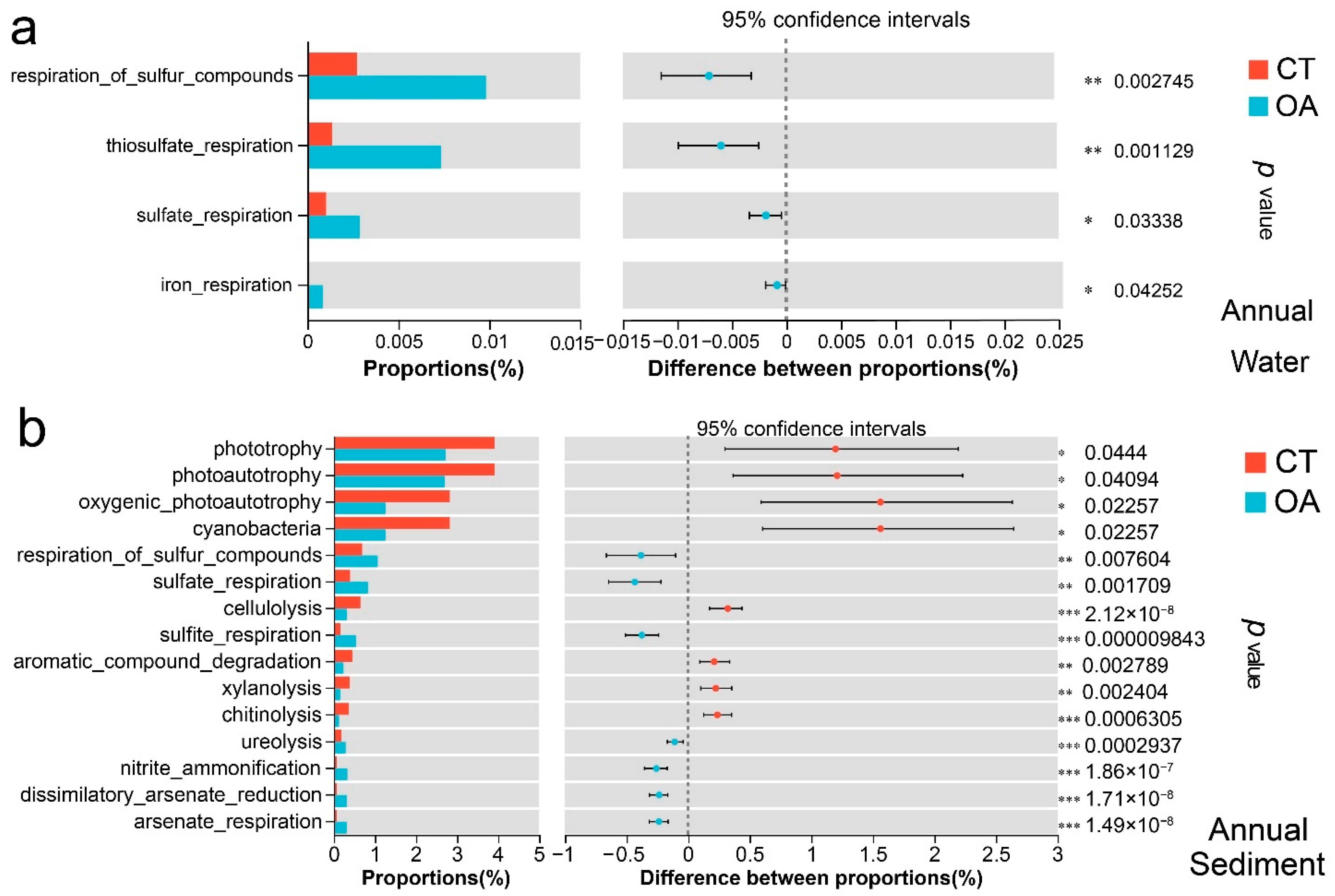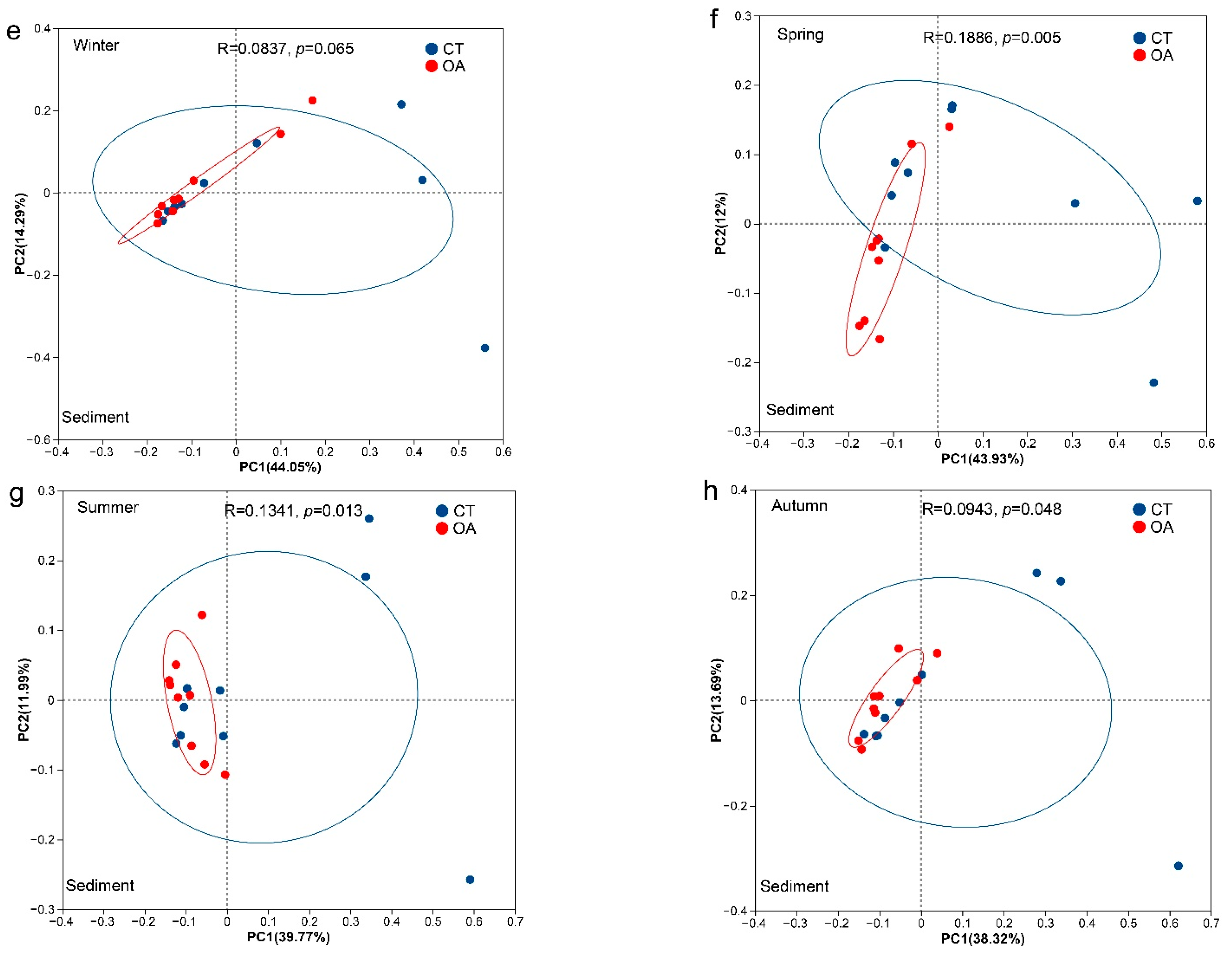 | Sediment Environment Factor | OA | CT | p-Value | ||||