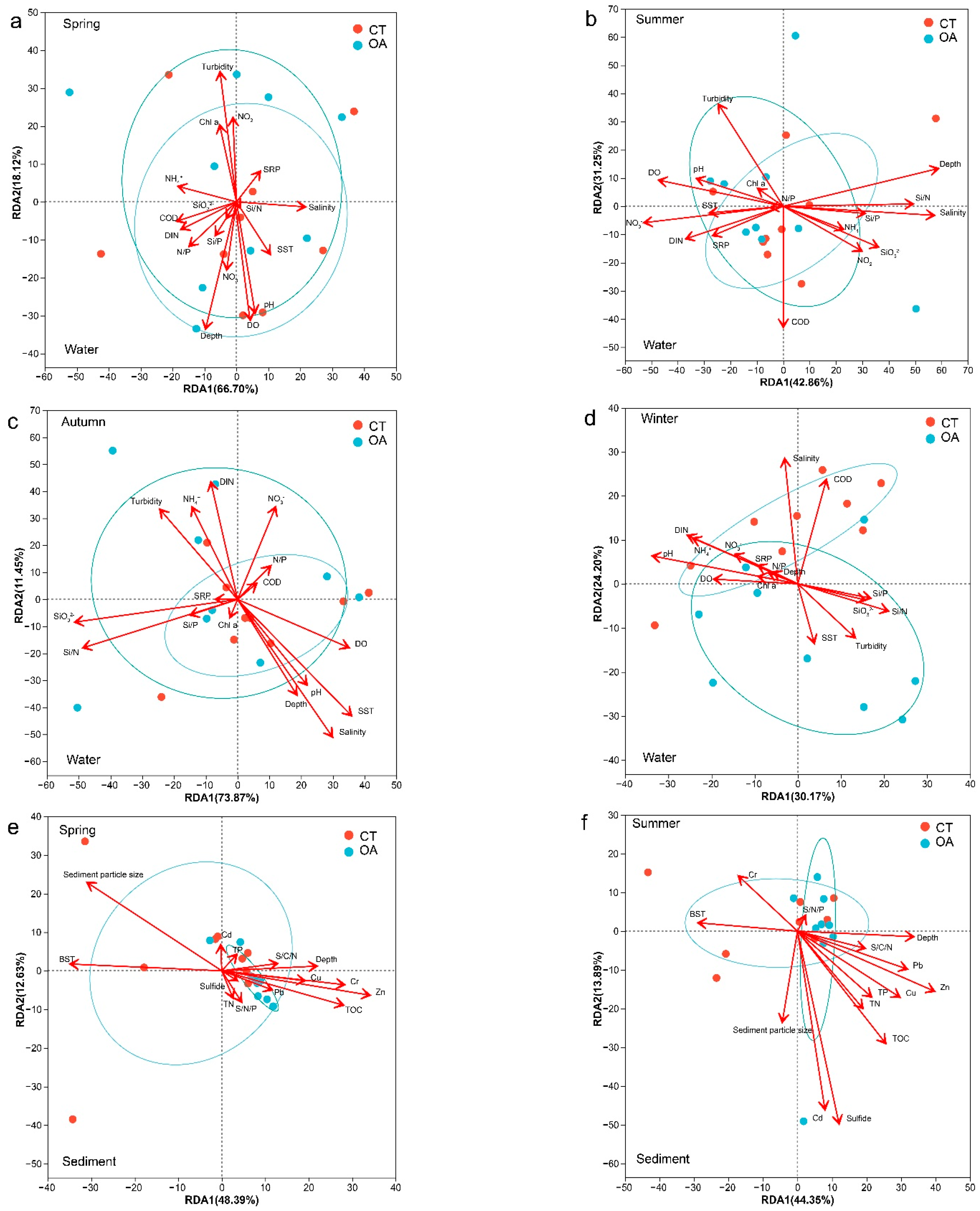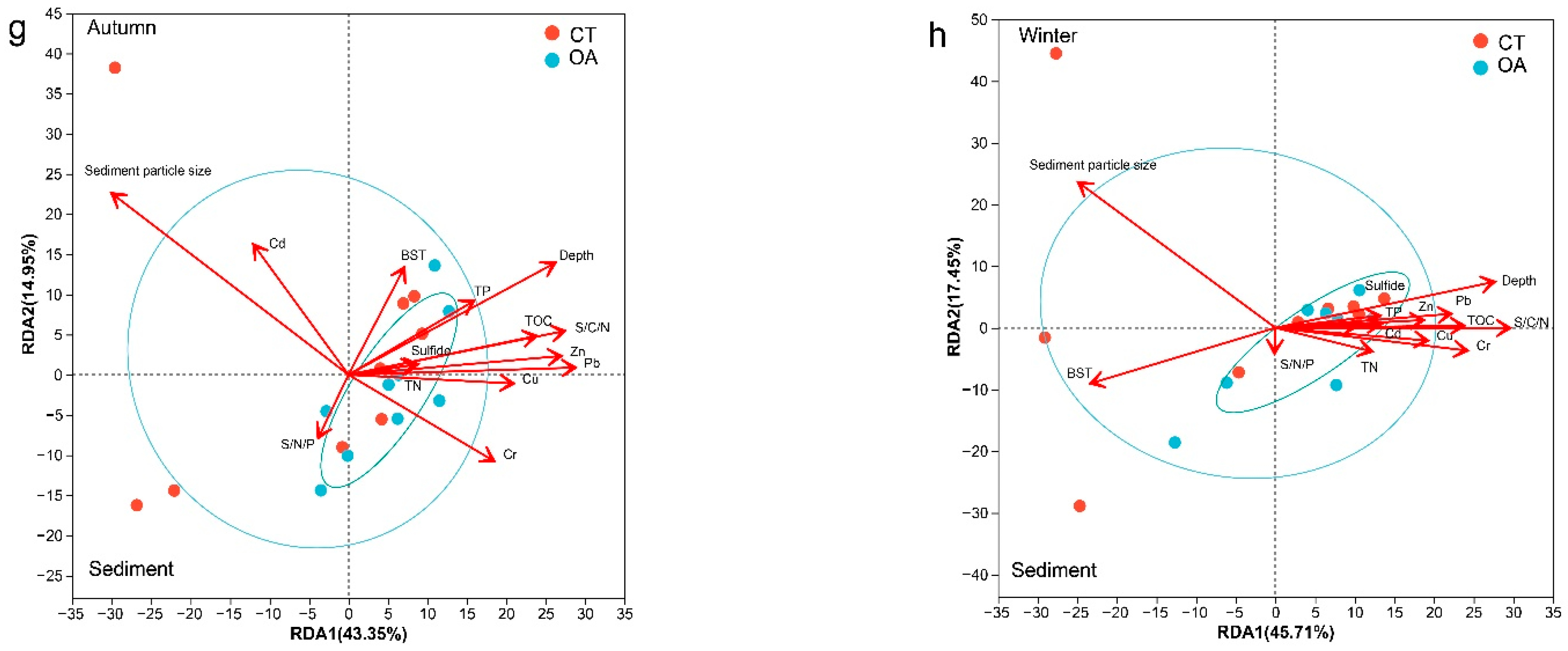 4.1. Oyster Aquaculture Disturbs Environmental Factors