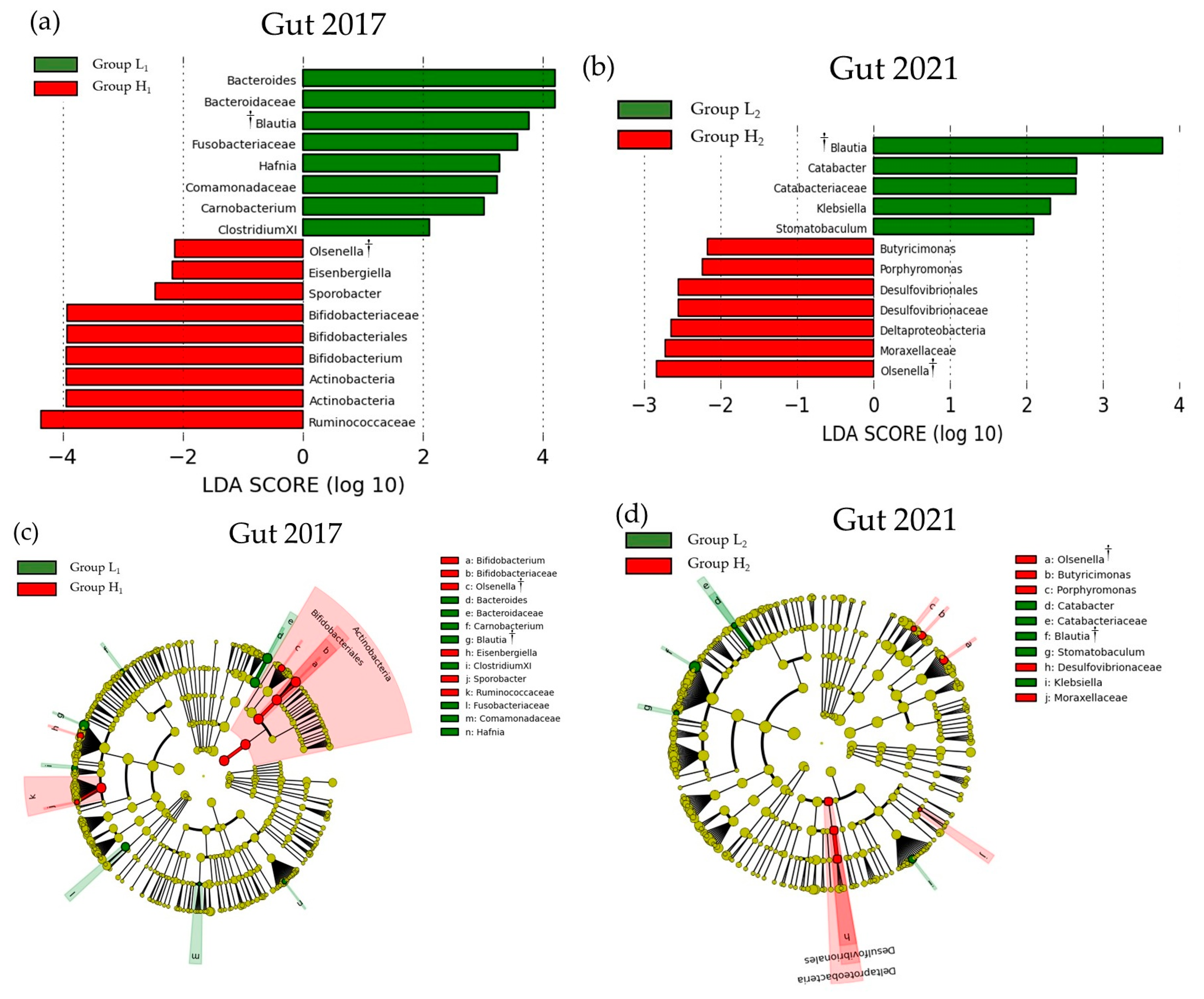 - Segata, N.; Izard, J.; Waldron, L.; Gevers, D.; Miropolsky, L.; Garrett, W.S.; Huttenhower, C. Metagenomic biomarker discovery and explanation. Genome Biol. 2011, 12, R60. [Google Scholar] [CrossRef]