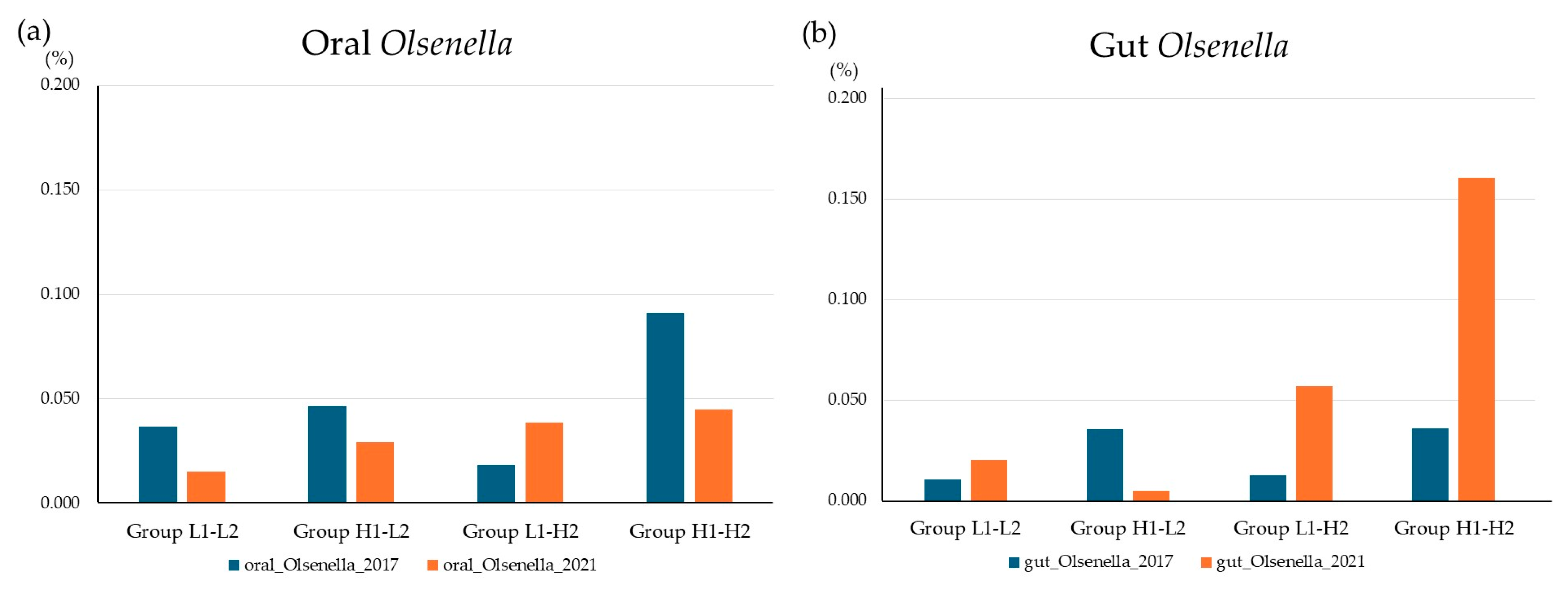 | Oral_Olsenella Change | Gut_Olsenella Change | |||