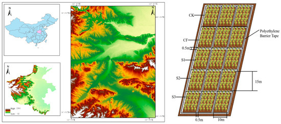 Figure 1. Experimental field location. CK: Topdressing with water at both JS and GP, CF: Topdressing with chemical fertilizer at both JS and GP, S1: Topdressing with biogas slurry at JS, followed by topdressing with chemical fertilizer at GP, S2: Topdressing with chemical fertilizer at JS, followed by topdressing with biogas slurry at GP, S3: Topdressing with biogas slurry at both JS and GP.