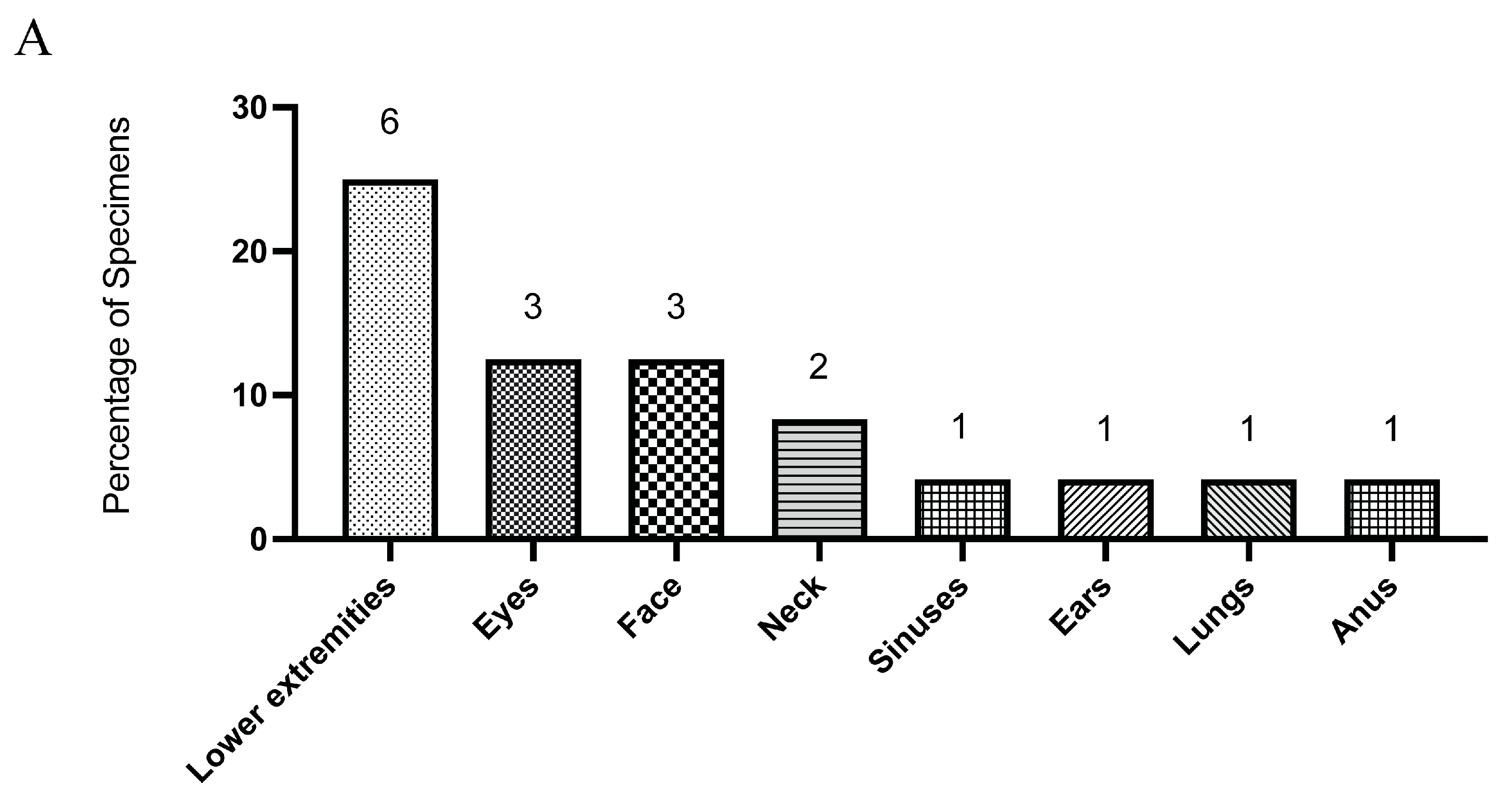 3.1. Aspergillus fumigatus Is the Most Common Isolate from Sterile Clinical Specimens