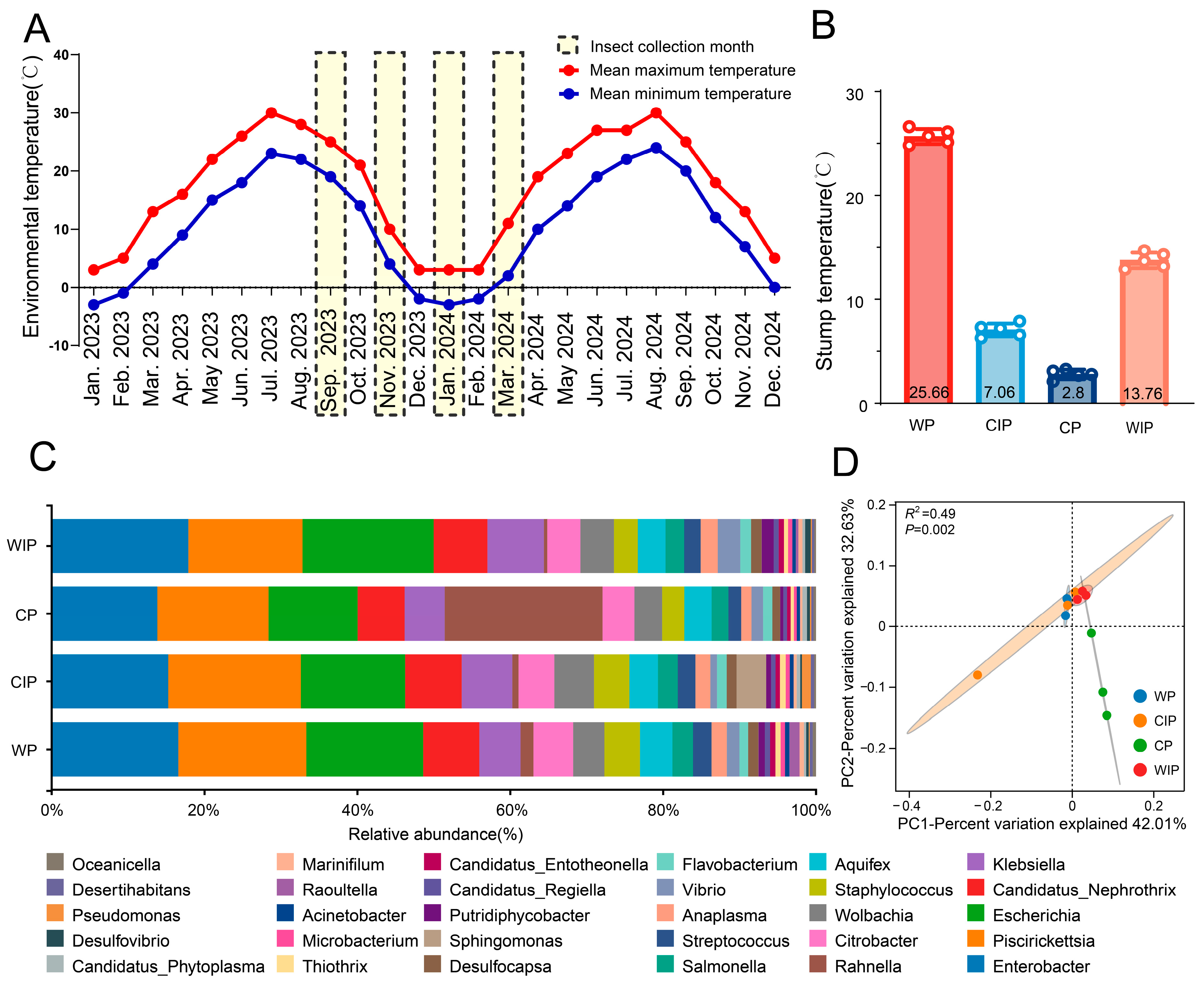 - Nie, S.; Liu, Y.-J.; Ge, Y. The host phylogeny and climate determine the gut bacteria of global insects. Sci. Total Environ. 2025, 966, 178812. [Google Scholar] [CrossRef]