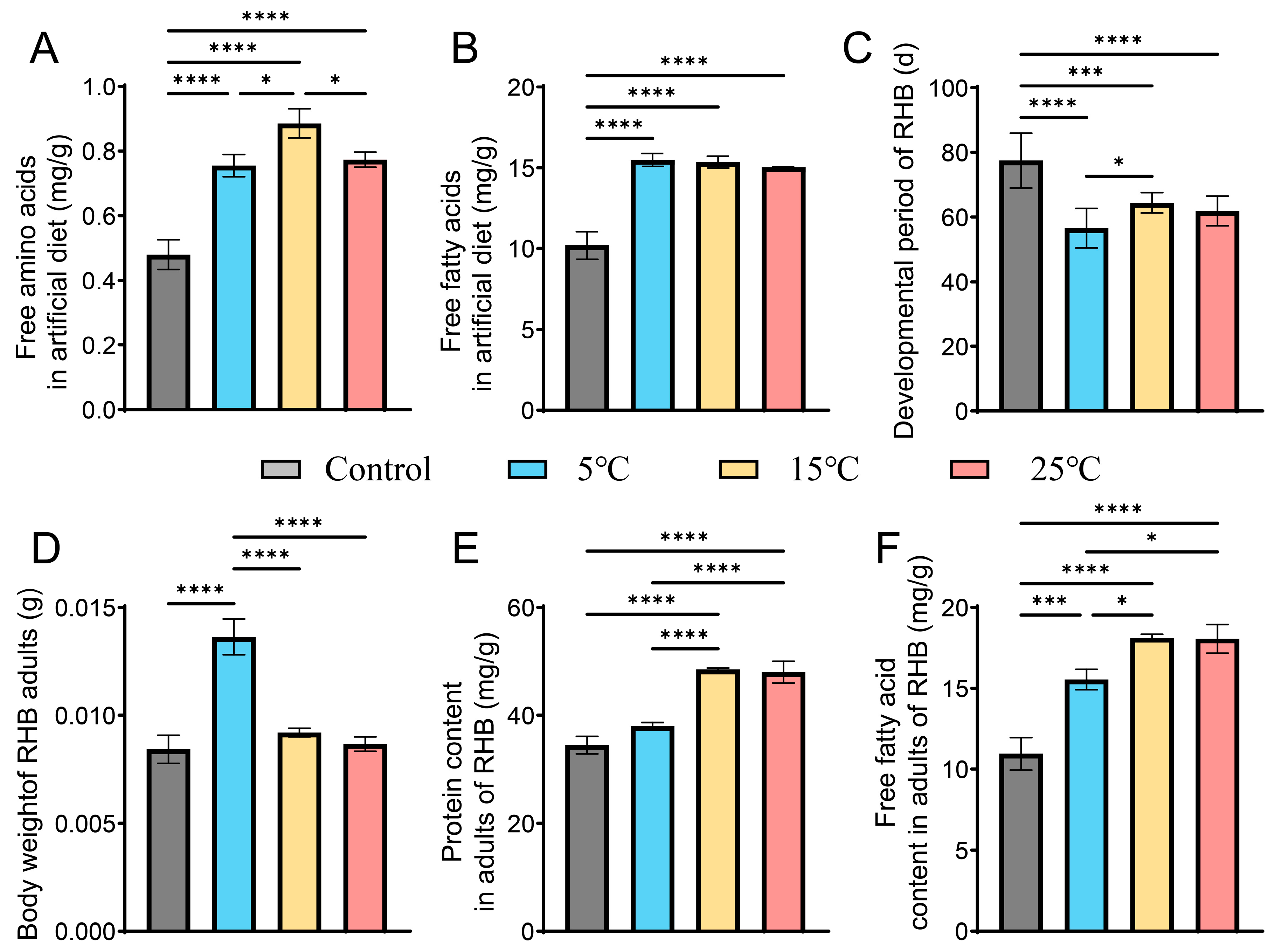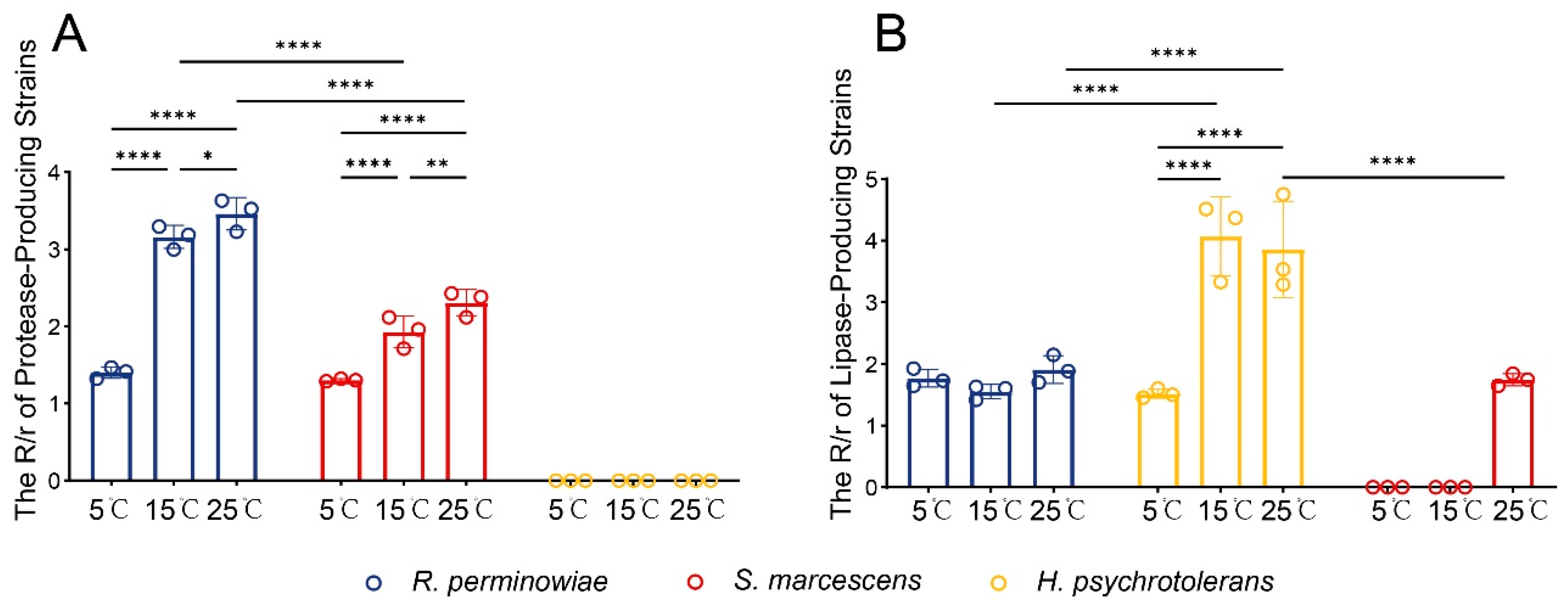 3.4. R. perminowiae Impact on Feed Nutritional Structure and RHB Development at Three Different Temperatures