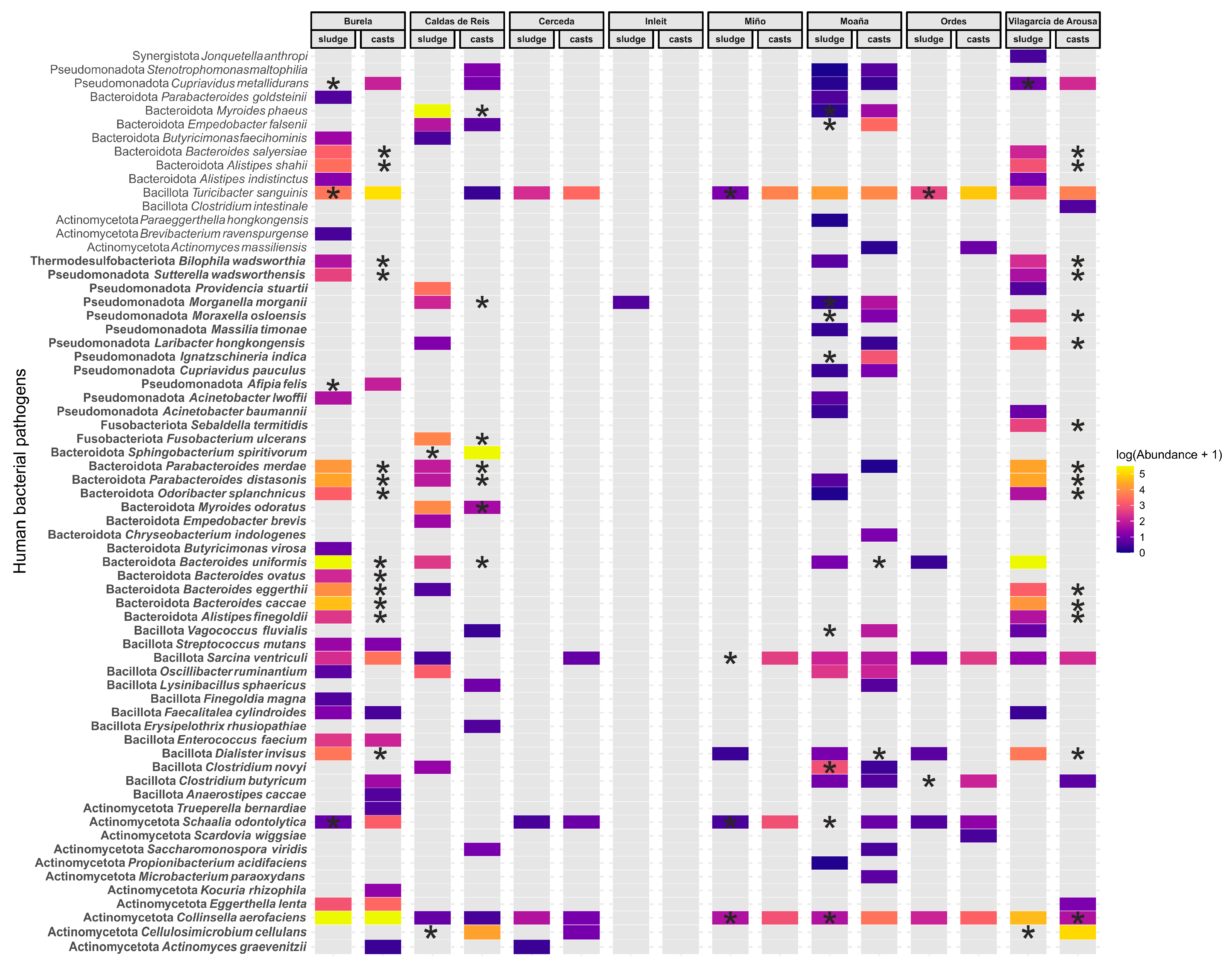 | Phylum | Sample Type | Burela | Caldas de Reis | Cerceda | Inleit | Miño | Moaña | Ordes | Vilagarcia de Arousa |