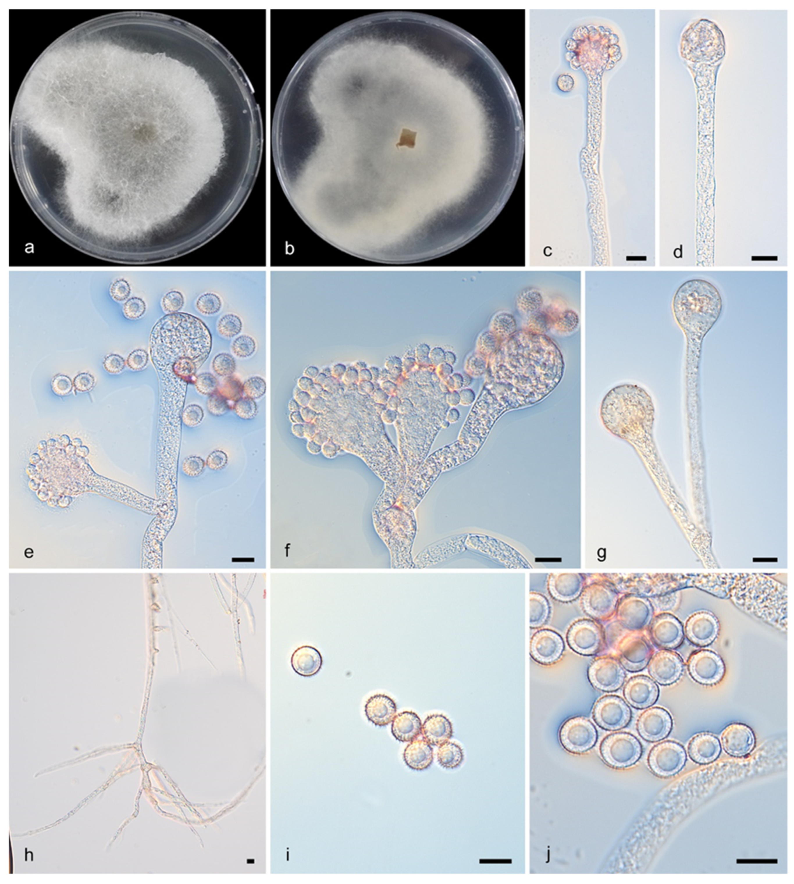- Suwannarach, N.; Kumla, J.; Supo, C.; Honda, Y.; Nakazawa, T.; Khanongnuch, C.; Wongputtisin, P. Cunninghamella saisamornae (Cunninghamellaceae, Mucorales), a new soil fungus from northern Thailand. Phytotaxa 2021, 509, 291–300. [Google Scholar] [CrossRef]