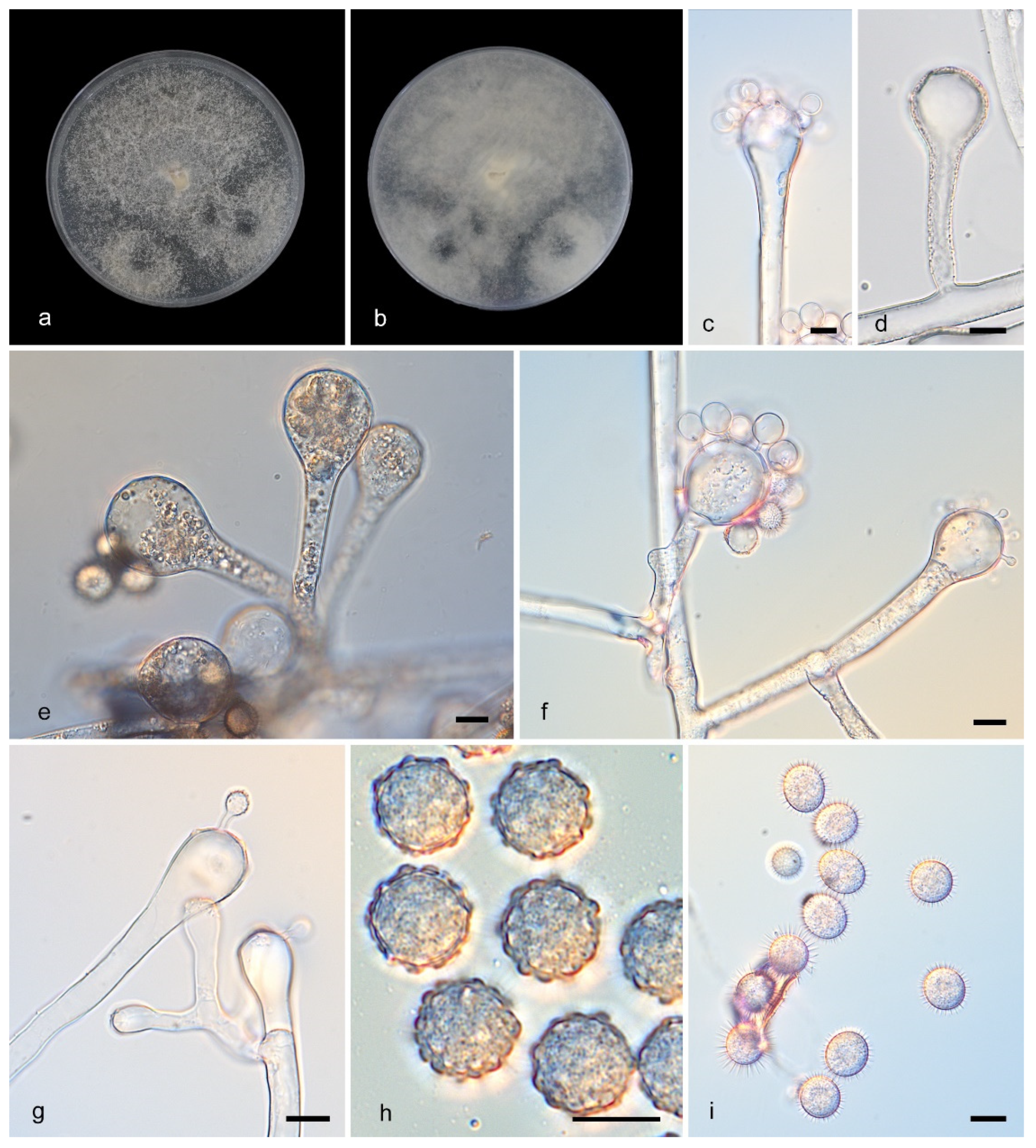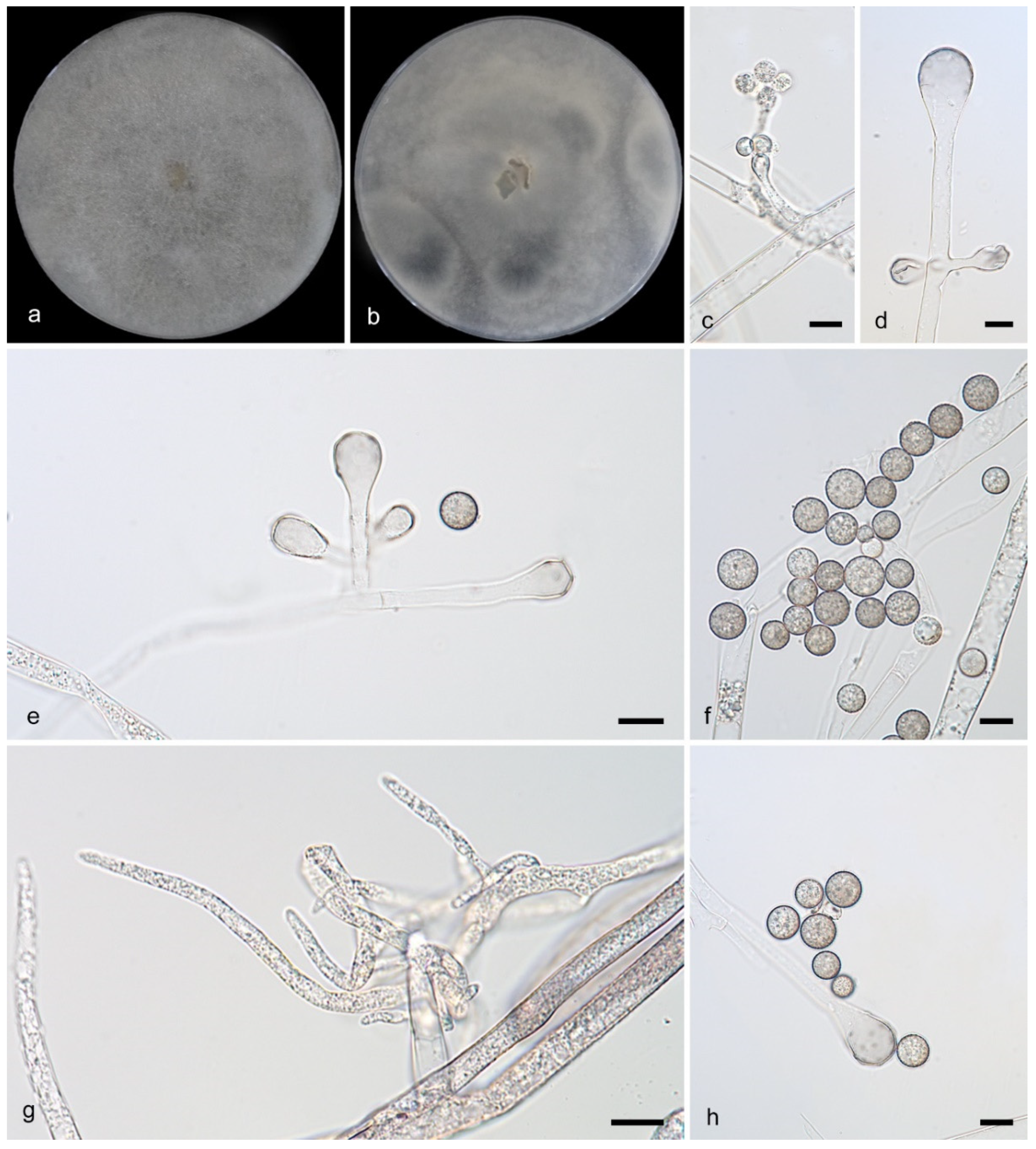 3.2.8. Cunninghamella tuberculata Y. Jiang, H. Zhao, Z. Meng & X.Y. Liu. sp. nov. Figure 9