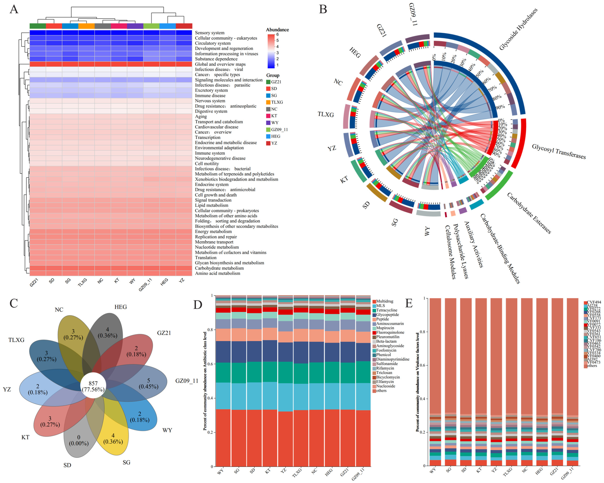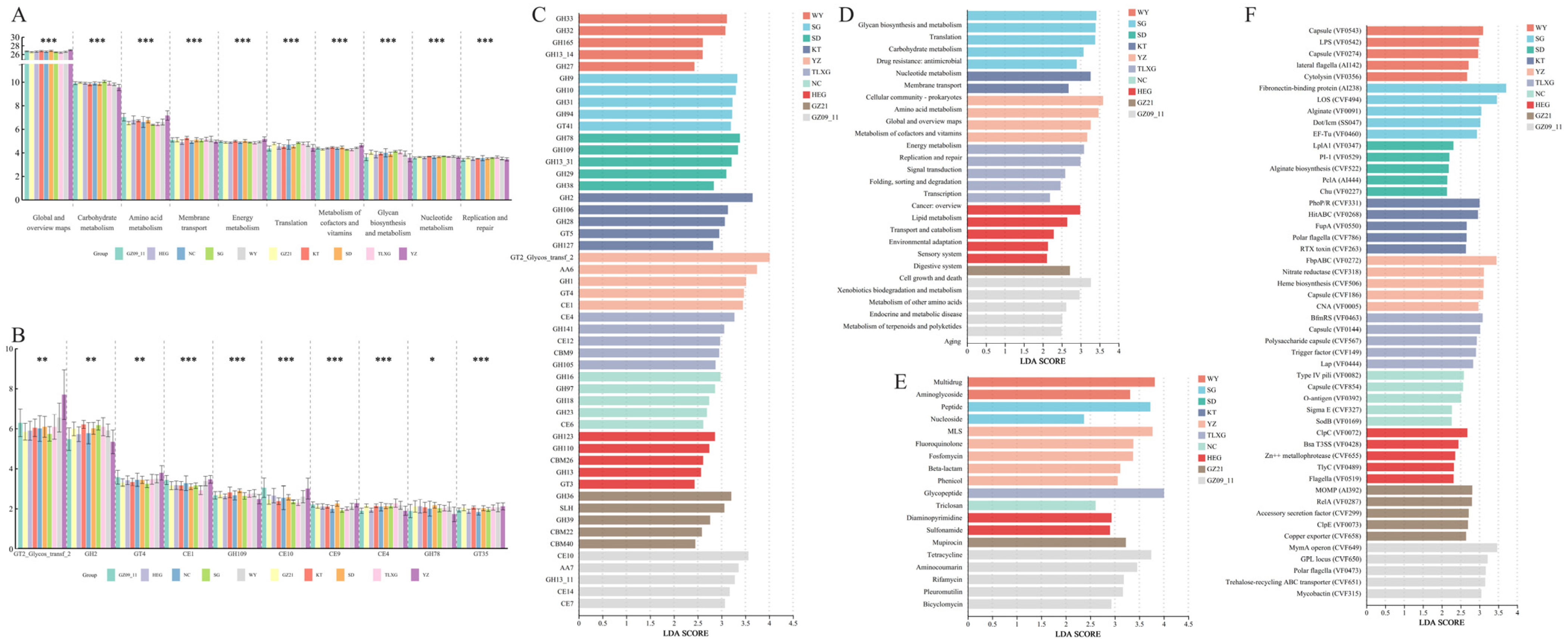 4.2. Antibiotic Resistance and Virulence Factor-Related Functions of Gut Microbiota in Different Geographical Populations of Przewalski’s Gazelle