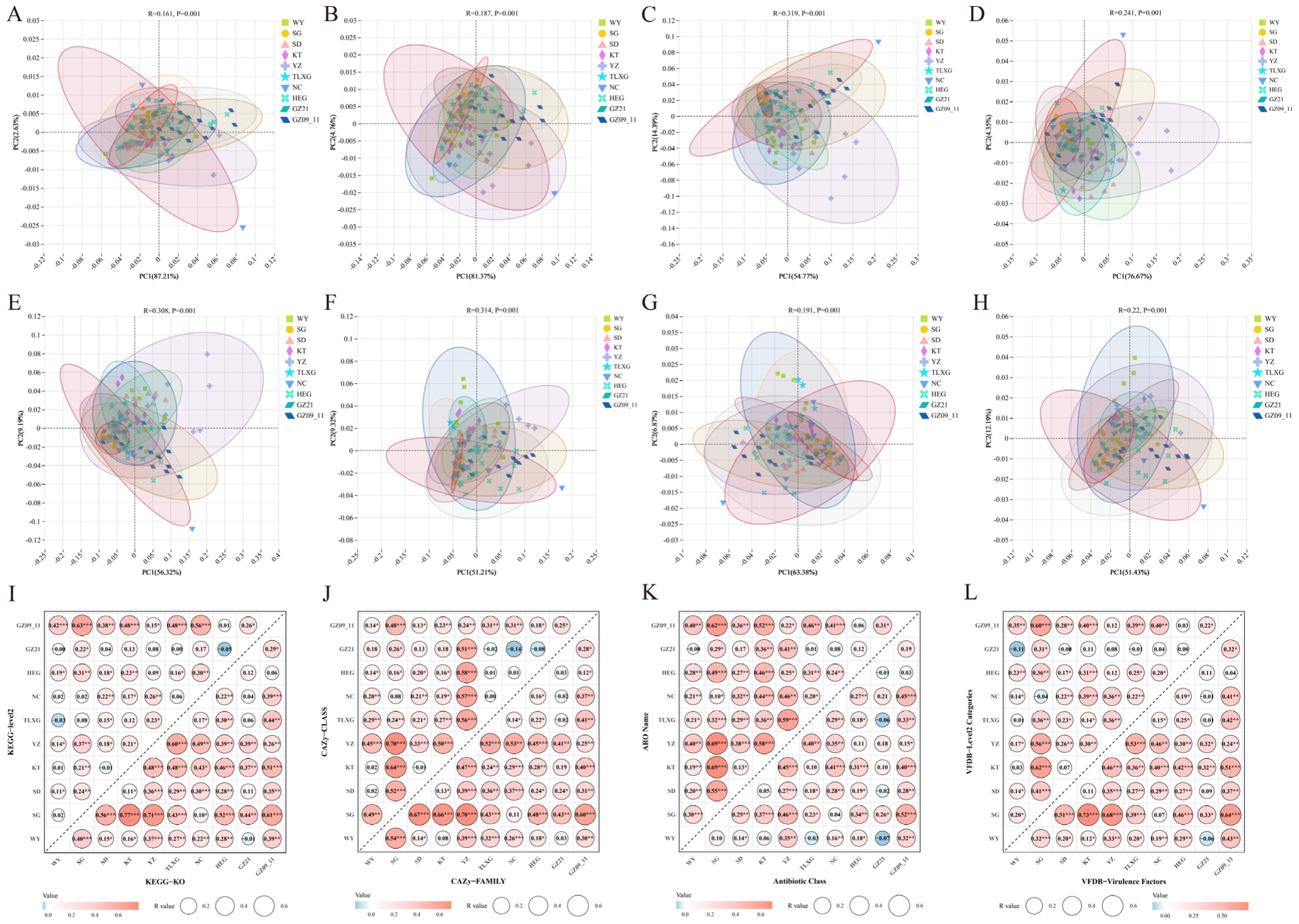 4.4. Correlation Between Gut Microbial Composition and Functional Profiles of Przewalski’s Gazelle Across Different Regions