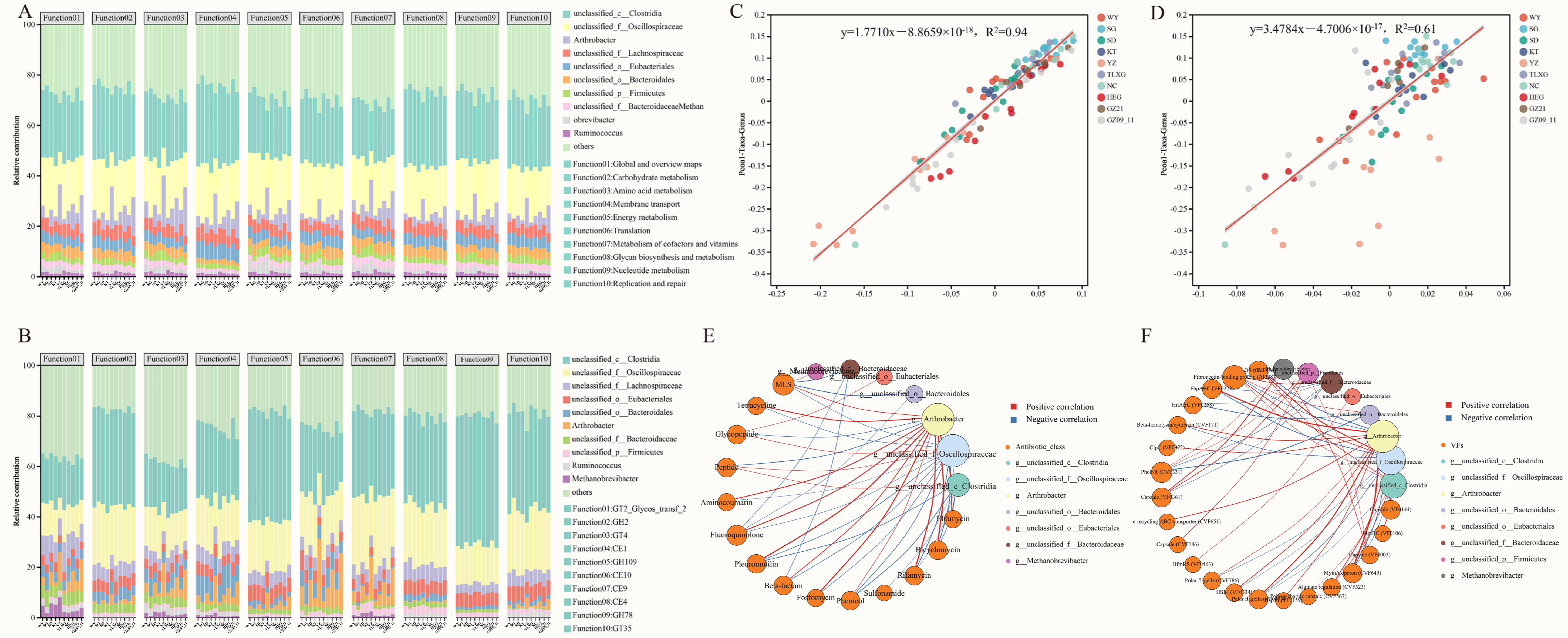 3.4. Correlation Analysis Between Gut Microbiota Composition and Functional Profiles in Przewalski’s Gazelles Across Different Regions
