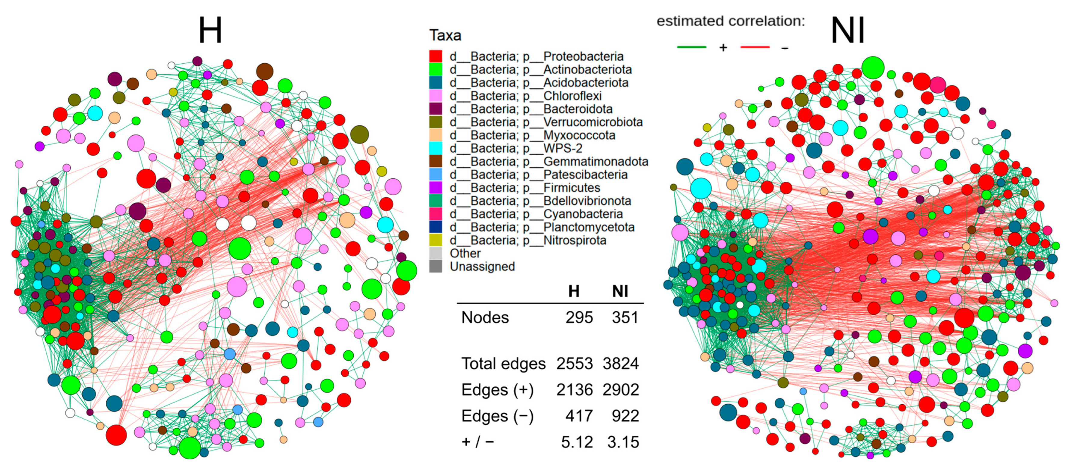 - Berry, D.; Widder, S. Deciphering microbial interactions and detecting keystone species with co-occurrence networks. Front. Microbiol. 2014, 5, 219. [Google Scholar] [CrossRef] [PubMed]