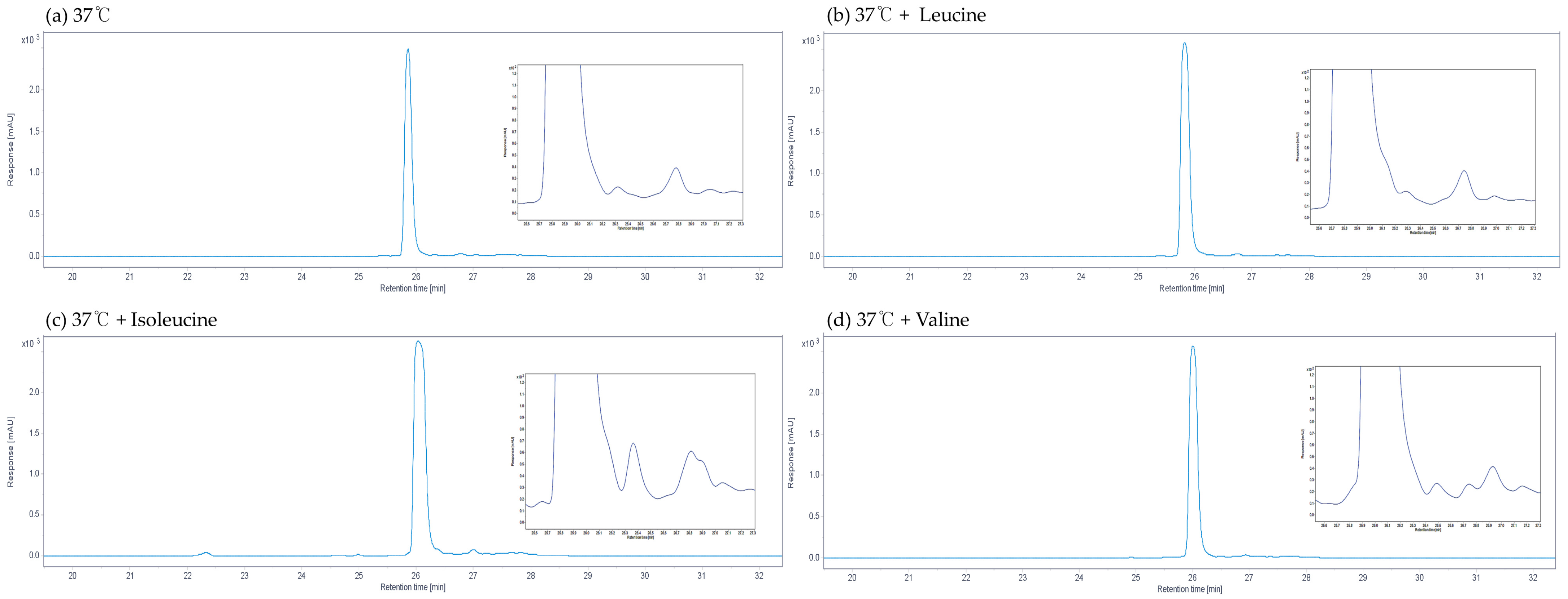 | 30 °C | 37 °C | Leucine | Isoleucine | Valine | |