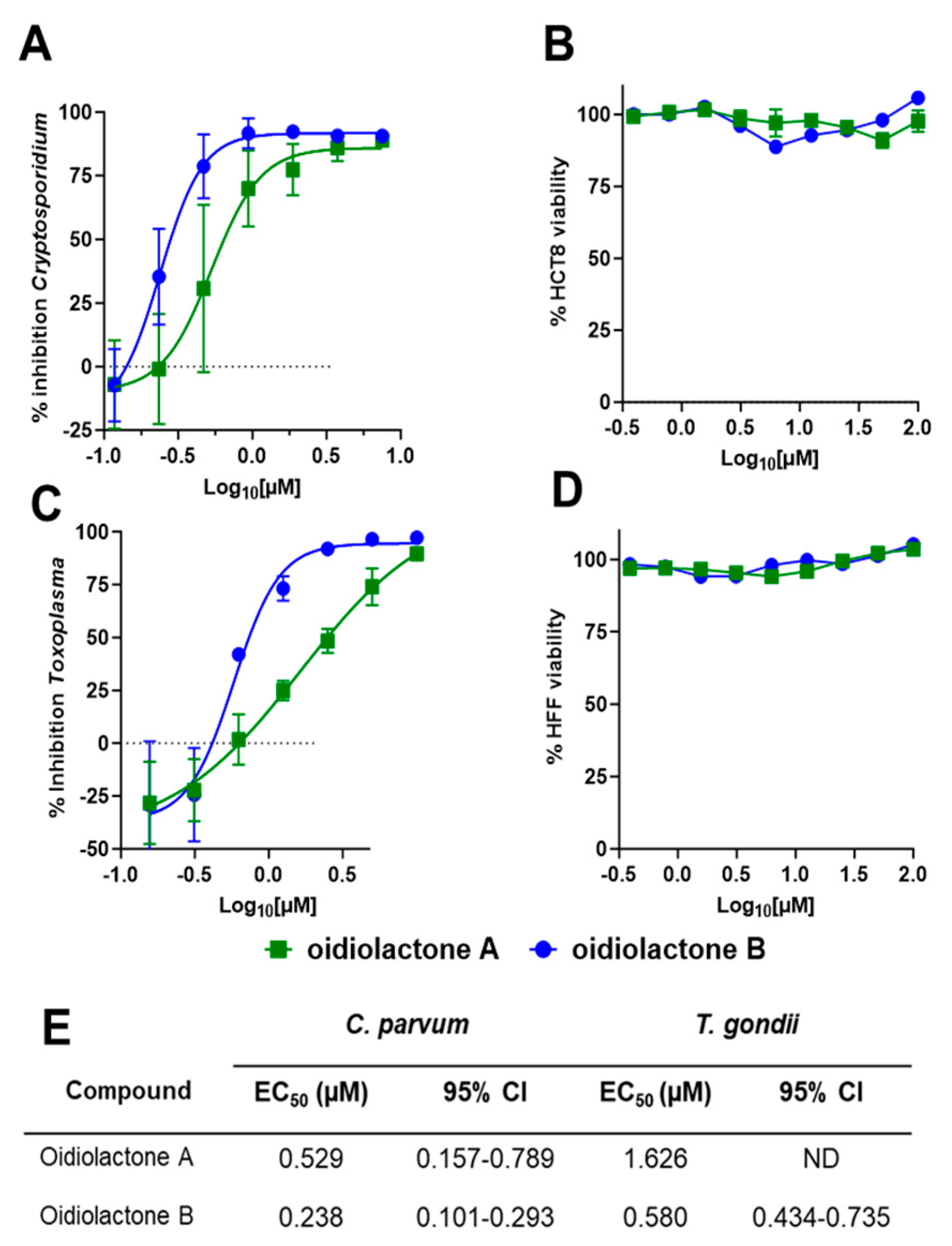 3.7. Oidiolactone A Has -Cidal Activity Against Both C. parvum and T. gondii