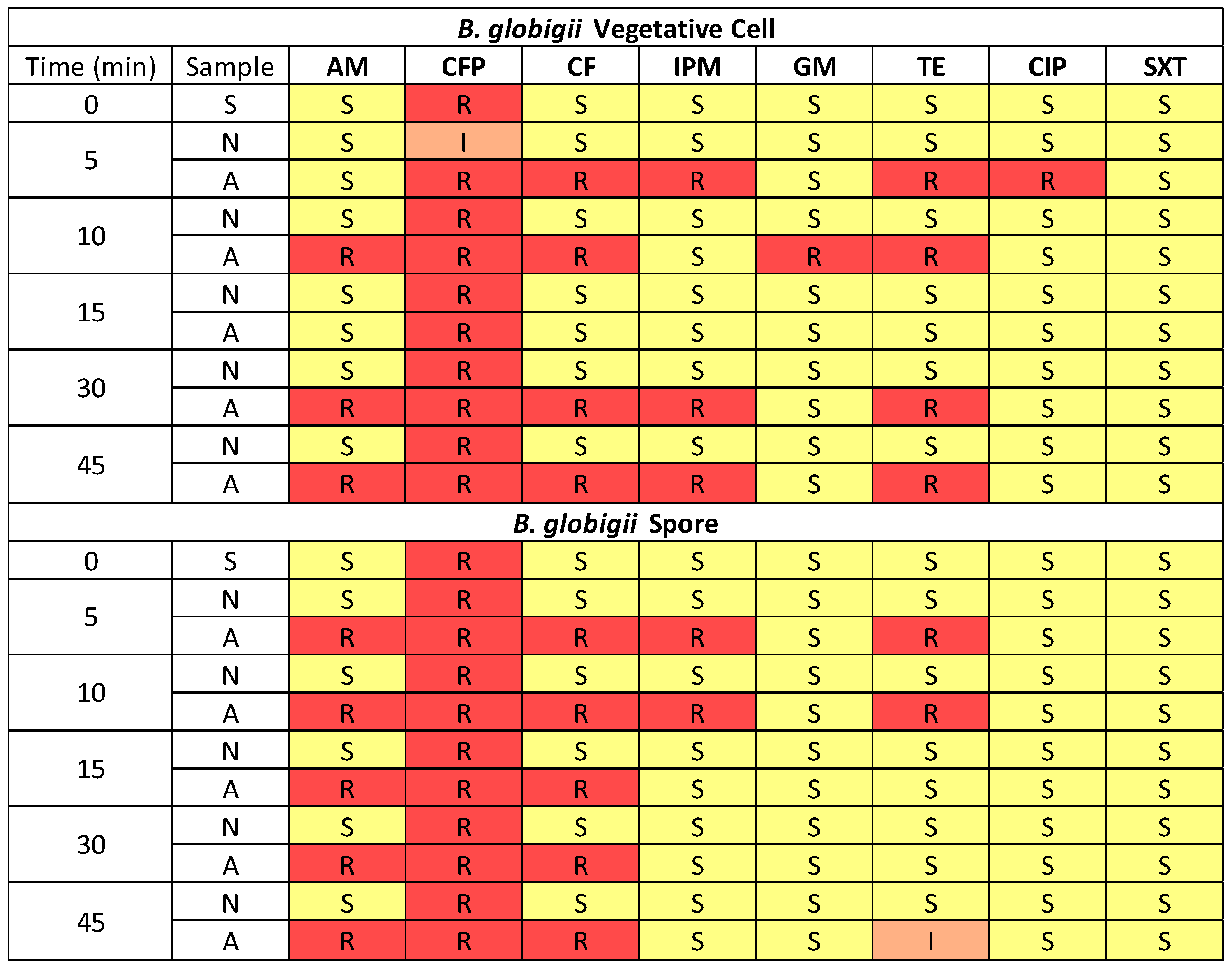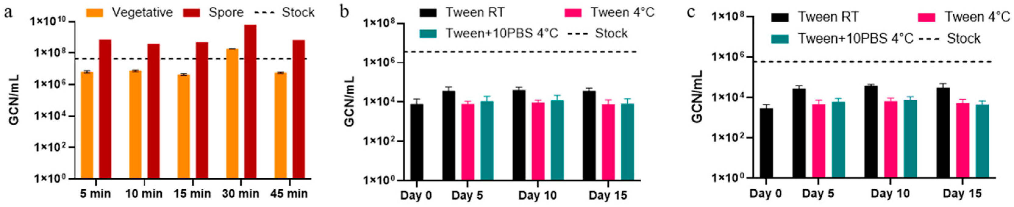 - Sella, S.R.; Vandenberghe, L.P.; Soccol, C.R. Life cycle and spore resistance of spore-forming Bacillus atrophaeus. Microbiol. Res. 2014, 169, 931–939. [Google Scholar] [CrossRef]