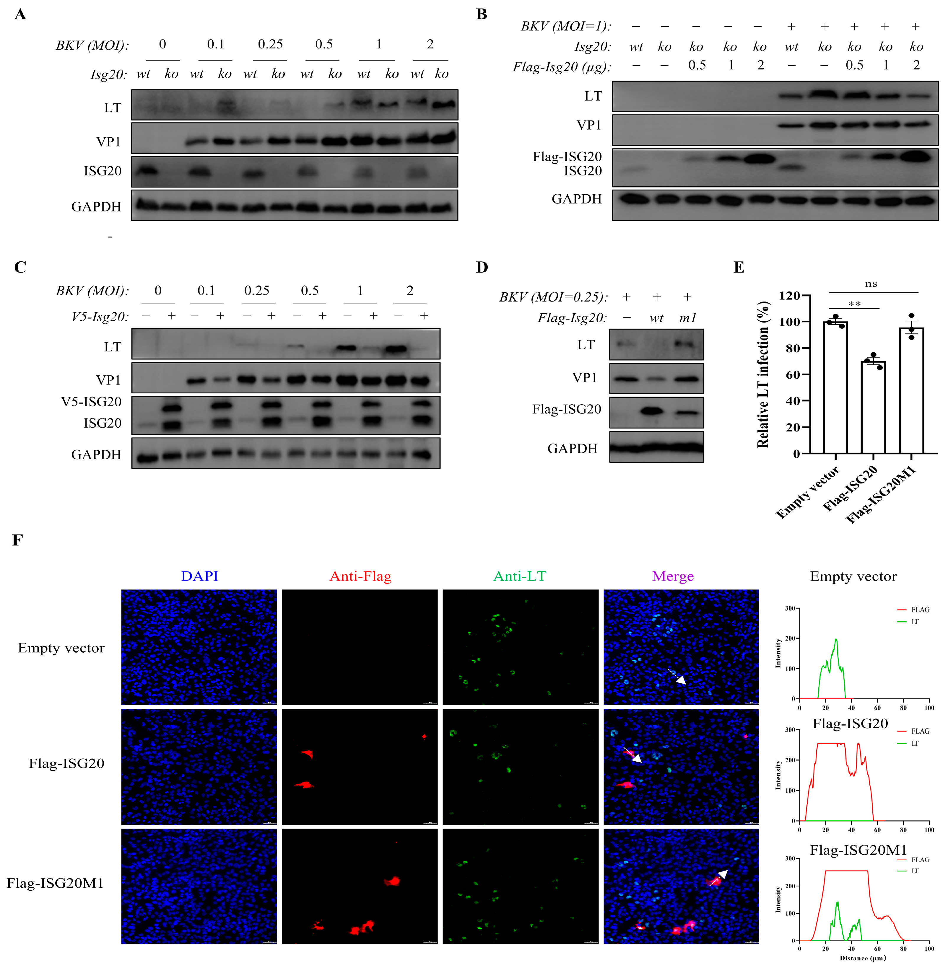 Chicago/Turabian StyleHou, Yumin, Chunlan Hu, Yejing Shi, Xiaohui Zhou, Tongyu Zhu, and Nannan Wu. 2025. "ISG20 Restricts BK Polyomavirus Infection and Engages in Reciprocal Regulation with Viral Large T Antigen" Microorganisms 13, no. 11: 2540. https://doi.org/10.3390/microorganisms13112540