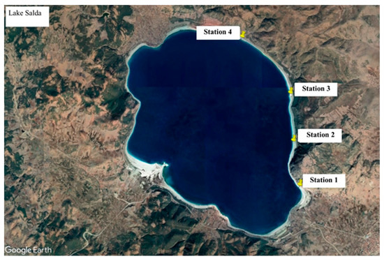 Before sampling, the physical structure of Lake Salda was examined, some surveys were conducted along the shoreline, and the most suitable sampling points were selected. Sampling was not conducted in areas open to the public. Stromatolite, water, and biofilm samples were collected from the stations (Figure 1).