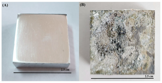 Visual images of AA7075 alloy (A) fresh coupon, (B) after 30-day incubation.
