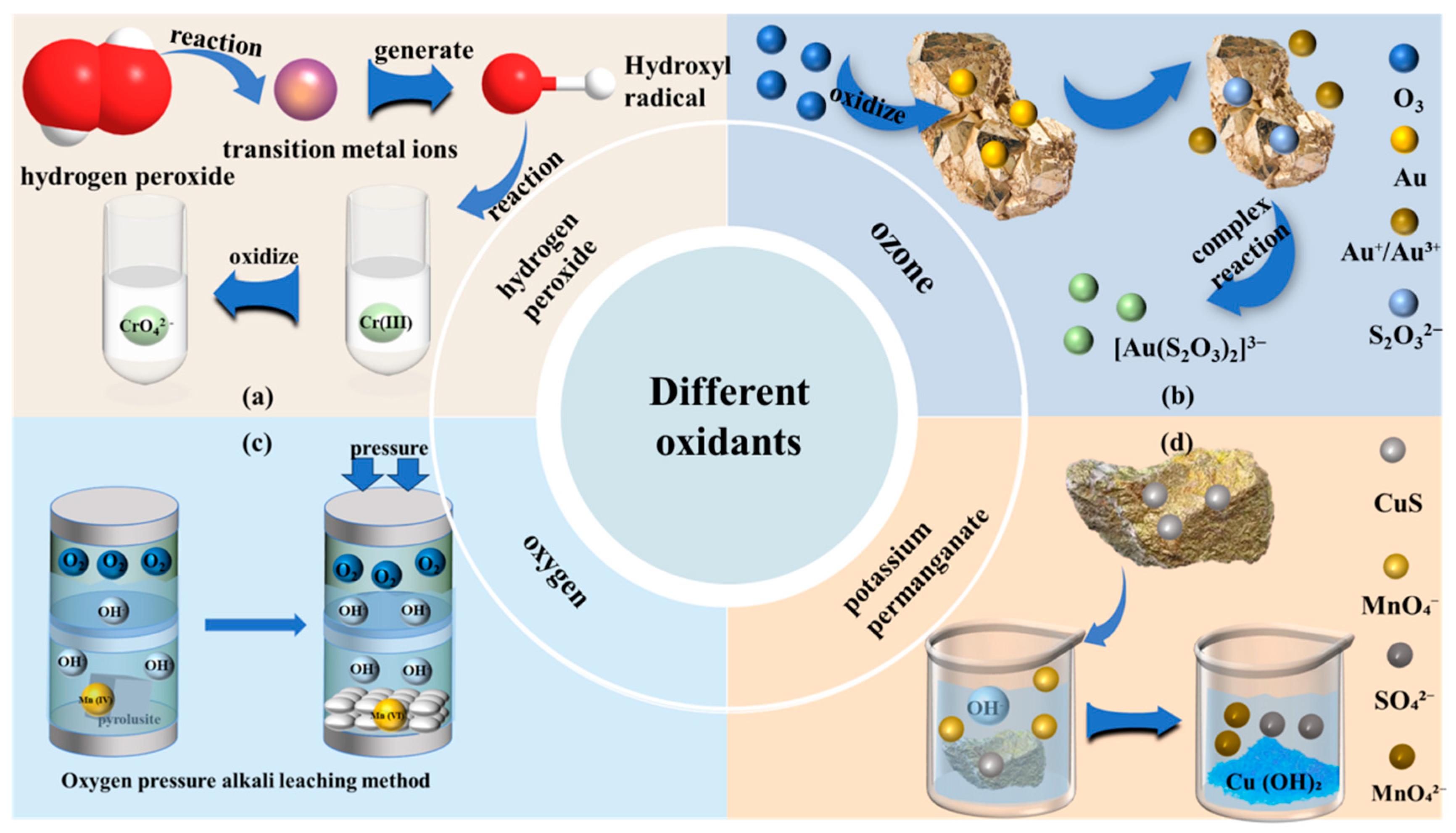 | 7 | Oxygen | Oxidants | Manganese ore, Arsenic-bearing residues | [31,32] |