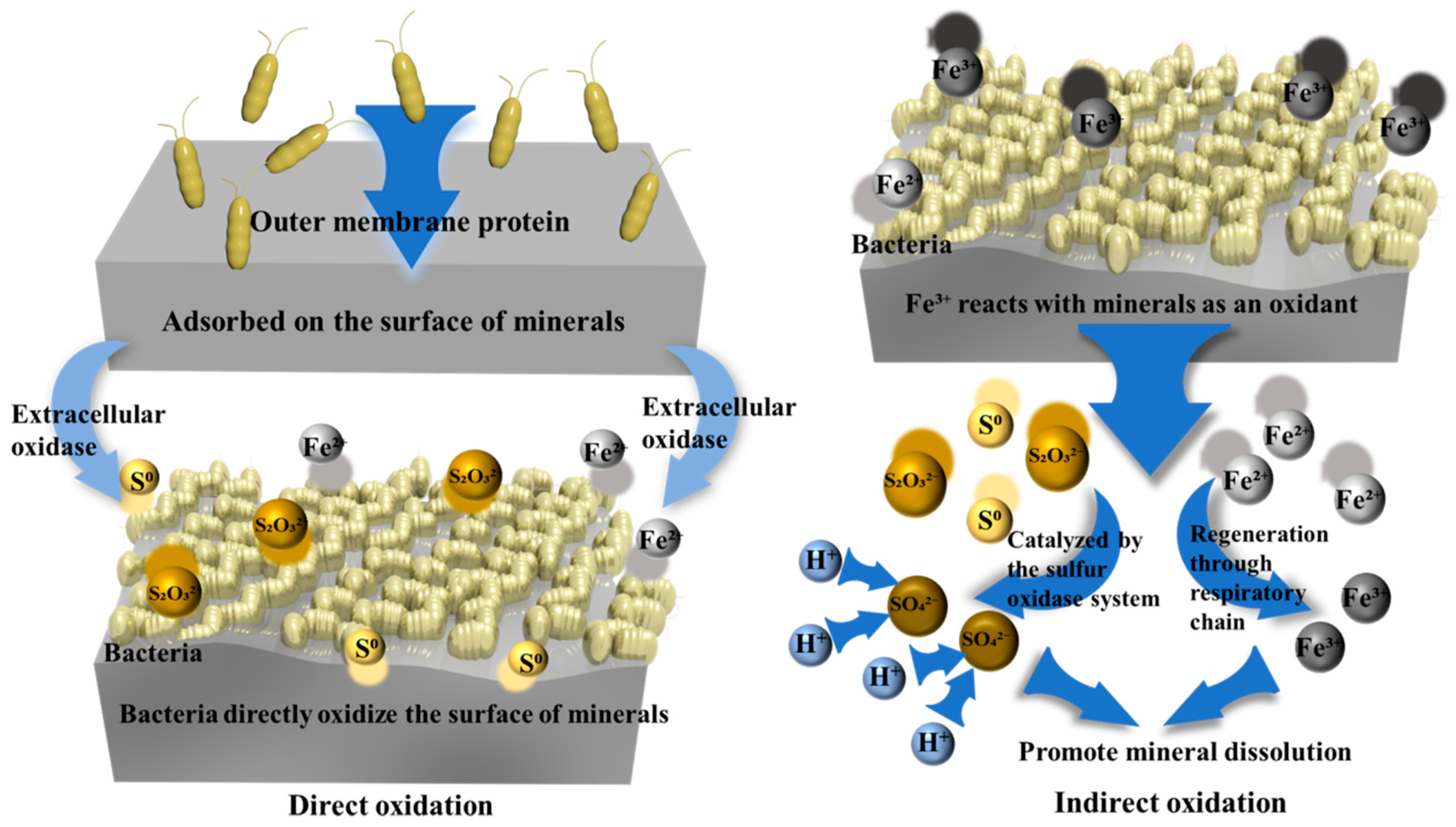 | 10 | Obligate iron-oxidizing bacteria | Acidophilic microorganisms | Sulfide minerals | [50,51,52] |