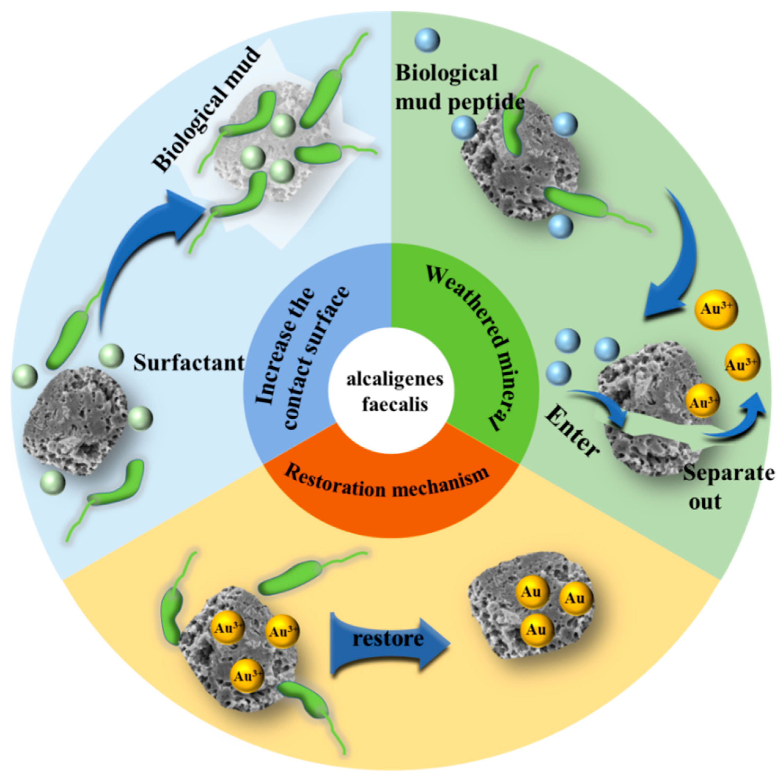 | 14 | Alcaligenes genus | Alkaline-tolerant microorganisms | gold ore | [62,63,64] |