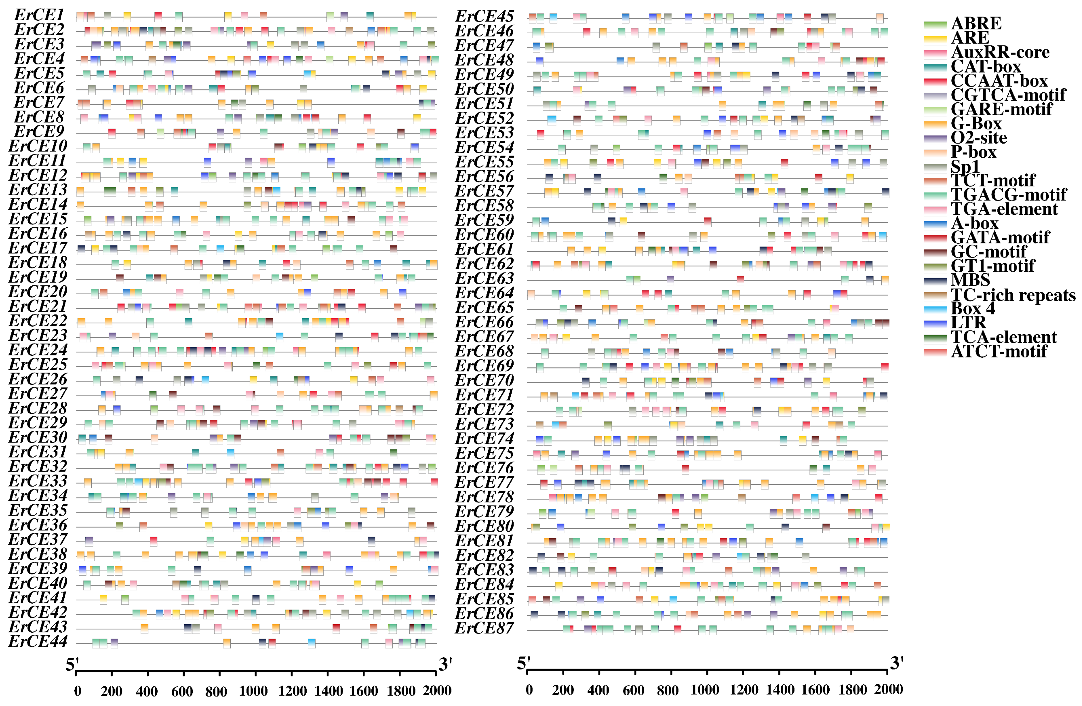 3.4. Analysis of Promoter Regulatory Elements of ErCEs