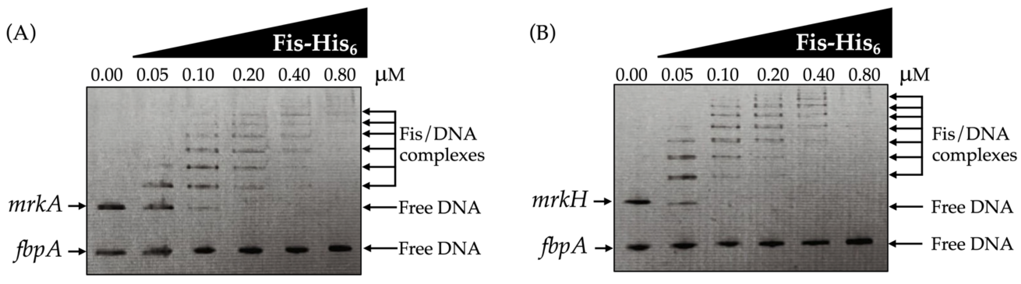 2.11. Identification of Putative Fis-Binding Motifs in the mrkA and mrkH Regulatory Regions