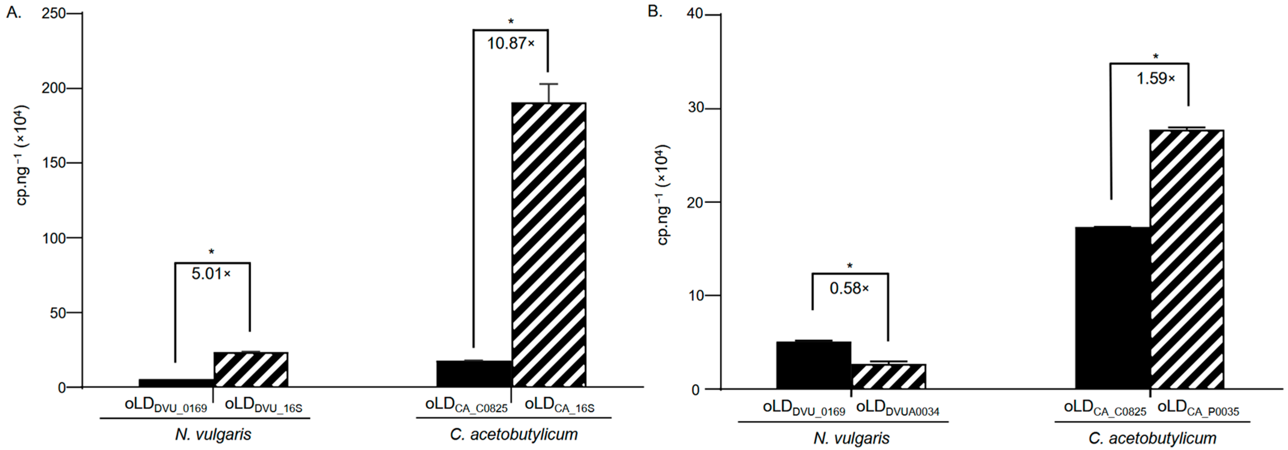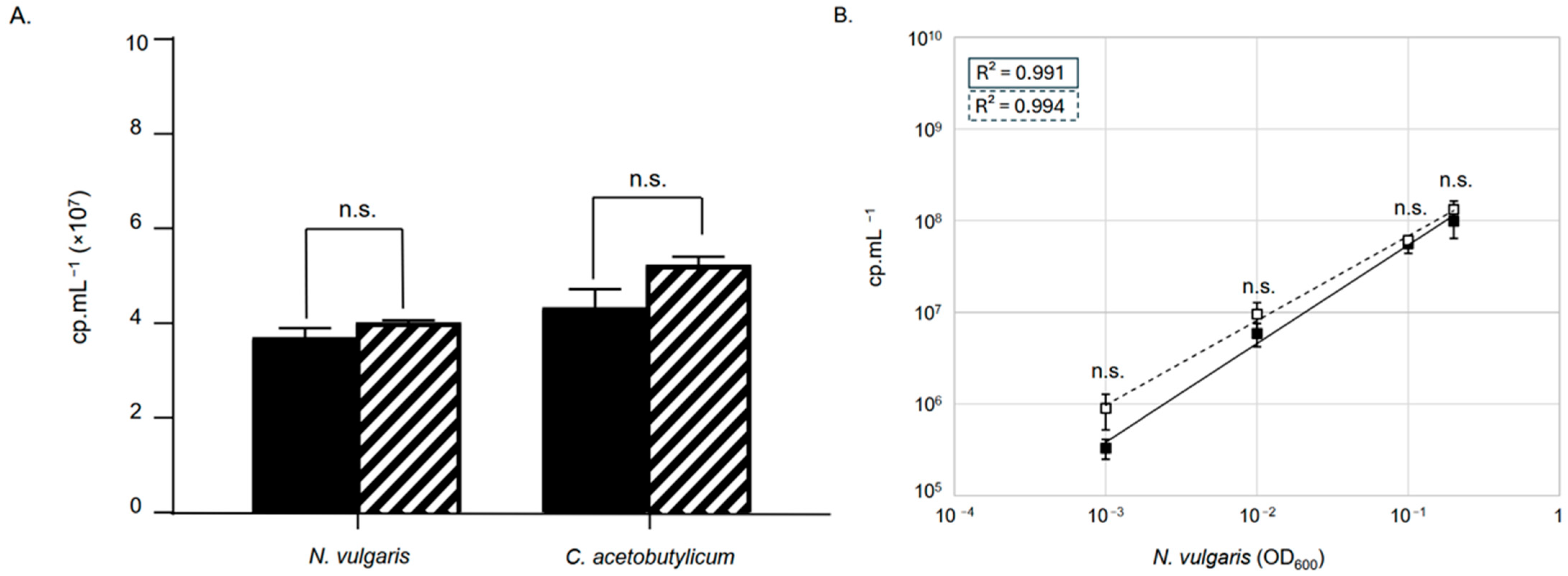 3.4. Plasmid Quantification in N. vulgaris and C. acetobutylicum Cultures