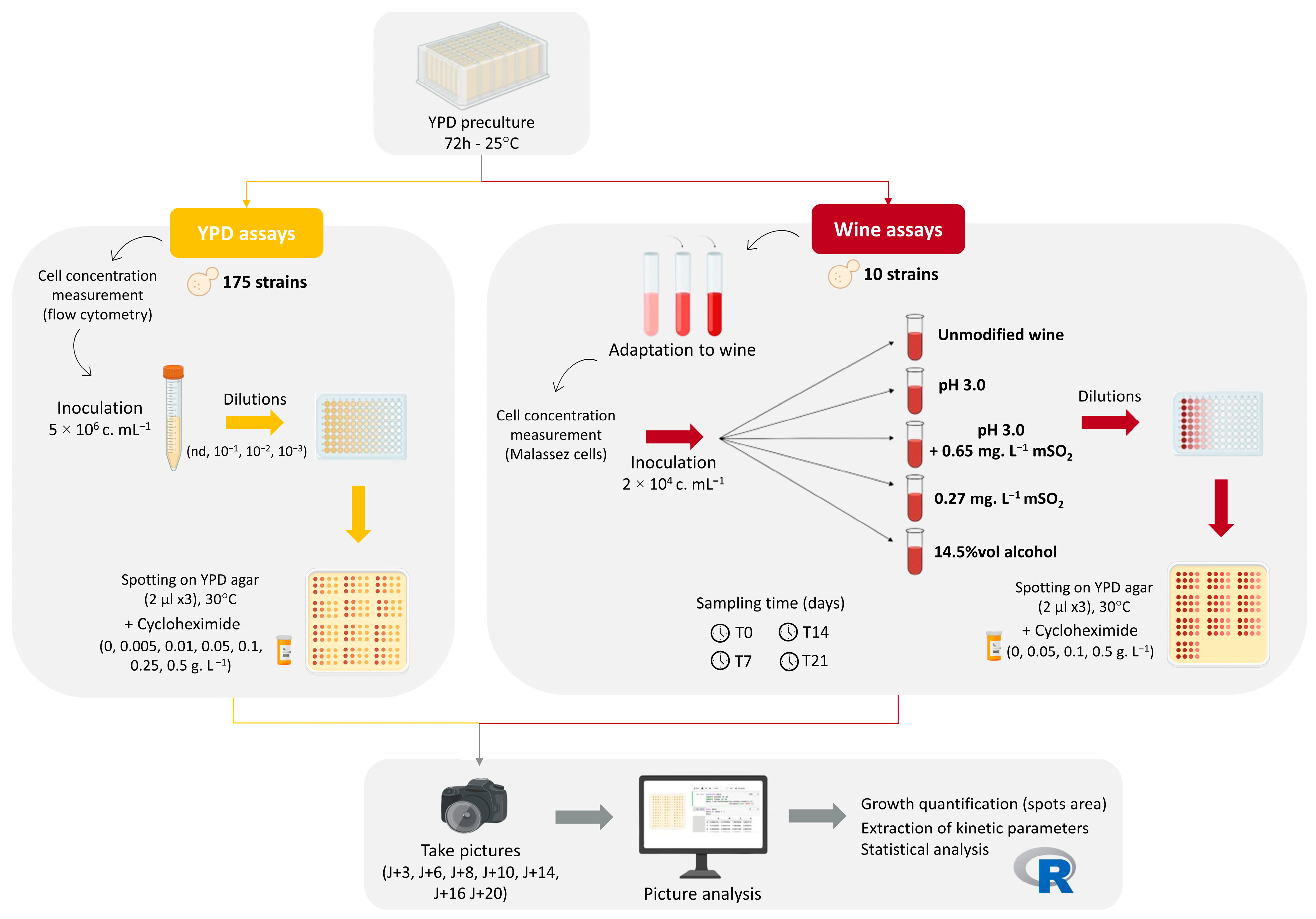 - Pilard, E.; Harrouard, J.; Miot-Sertier, C.; Marullo, P.; Albertin, W.; Ghidossi, R. Wine Yeast Species Show Strong Inter- and Intra-Specific Variability in Their Sensitivity to Ultraviolet Radiation. Food Microbiol. 2021, 100, 103864. [Google Scholar] [CrossRef]